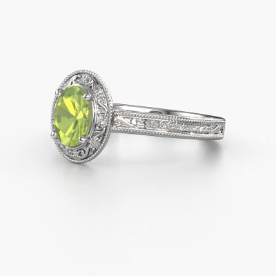 Cette bague de fiançailles porte le nom Alice OVL. Cette bague de fiançailles forgée en or est sertie d’un péridot de 7x5 mm. Qu'est-ce qui rend votre relation unique ? Qu'est-ce que qui fait que vous souhaitiez qu’elle devienne votre femmes ? Cet anneau unique que vous avez ensemble peut être reflété dans une bague unique. Une bague de fiançailles halo unique qui est seulement créée pour elle. Et c'est la raison pour laquelle cette bague de fiançailles lui ira parfaitement. Chaque détail de cette bague de fiançailles ci-dessous forgée en platine sertie d’un péridot est composée, travaillée et polie à la main par notre orfèvre dans notre atelier. Le résultat final est une magnifique bague de fiançailles, unique et parfaitement forgée dans les moindres détails ! Ce résultat est ce que nos orfèvres recherchent à tout prix ! Ce bijou est faite avec passion et amour par l'un de nos maîtres orfèvres.Qu'y a-t-il dorénavant de plus beau qu'une bague de fiançailles vintage conçue par vous-même et fabriquée à la main par nous. Vous pouvez personnaliser chaque modèle avec les différents métaux précieux et pierres précieuses. De cette façon, vous pourrez créer une bague de fiançailles unique. Cette bague peut être mise en place de plusieurs façons. Bien sûr, vous pouvez toujours nous contacter et nous serons heureux de vous aider à composer votre bague de fiançailles vintage Alice OVL. Vous aimez le design, mais vous souhaitez tout de même quelque chose qui vous convienne plus, ou bien vous souhaitez une pierre précieuse dans les bijoux que vous ne pouvez pas choisir sur notre site, contactez-nous et nous vous aiderons.Notre équipe ajoute quotidiennement de nouveaux modèles à notre collection en ligne. Nos designers et orfèvres travaillent ensemble pour créer le meilleur design. Nous nous efforçons d'offrir une collection diversifiée de bijoux. Peut-être avez-vous déjà en tête un bijou en particulier ? Un bijou que vous avez trouvé quelque part. Veuillez nous contacter pour une consultation gratuite. Nous vous ferons une offre, basée sur un rapport qualité / prix juste, qui vous déconcertera.Pour vous faciliter la tâche, vous pouvez facilement nous retourner tout bijou commandé dans les 30 jours suivant la livraison.
