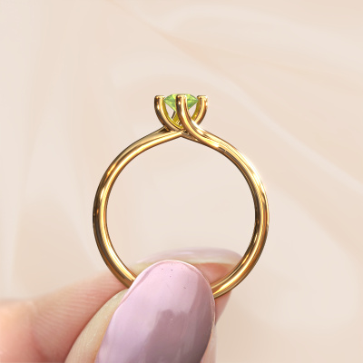 Il n'y en a qu'une pour vous ! Elle est rare, unique et pure... Cette large bague de fiançailles solitaire forgée en or jaune avec un péridot représente magnifiquement toutes ces caractéristiques. Ce péridot a été soigneusement sélectionné par nos orfèvres et est, tout comme votre bien-aimée, unique. Quoi de plus beau de lui offrir ce symbole avec votre demande en mariage Nous avons donné le nom Dewi Round à la bague de fiançailles mentionnée ci-dessous. Ce type de bague de fiançailles est appelée une bague de fiançailles solitaire car elle ne contient qu’une seule pierre précieuse. La bague de fiançailles est forgée en or 14 Carat et comporte un péridot ronds d’une de 4 mm. Chaque bijou est fabriquées avec passion et amour par l'un de nos maîtres orfèvres.Saviez-vous que nous offrons la garantie du meilleur prix pour votre bague de fiançailles? Cela est possible car tous nos bijoux sont fabriqués à la main dans notre propre atelier. Nous n'avons pas de frais de stocks qui sont coûteux, et nous fabriquons votre bague uniquement une fois que vous l'avez commandée. Grâce au fait que nous ayons toute la production du bijou en main, nous pouvons vous informer sur toutes les caractéristiques de cette bague de fiançailles. C’est précisément parce que l’achat d’une bague en ligne est une expérience excitante que nous comprenons qu’il est plus confortable pour vous de connaître toutes les caractéristiques de votre bague.Notre équipe ajoute quotidiennement de nouveaux modèles à notre collection en ligne. Nos designers et orfèvres travaillent ensemble pour créer le meilleur design. Nous nous efforçons d'offrir une collection diversifiée de bijoux. Peut-être avez-vous déjà en tête un bijou en particulier ? Un bijou que vous avez trouvé quelque part. Veuillez nous contacter pour une consultation gratuite. Nous vous ferons une offre, basée sur un rapport qualité / prix juste, qui vous déconcertera.Pour vous faciliter la tâche, vous pouvez facilement nous retourner tout bijou commandé dans les 30 jours suivant la livraison.