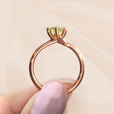 Il n'y en a qu'une pour vous ! Elle est rare, unique et pure... Cette large bague de fiançailles solitaire forgée en or rose avec un péridot représente magnifiquement toutes ces caractéristiques. Ce péridot a été soigneusement sélectionné par nos orfèvres et est, tout comme votre bien-aimée, unique. Quoi de plus beau de lui offrir ce symbole avec votre demande en mariage Nous avons donné le nom Dewi Oval à la bague de fiançailles mentionnée ci-dessous. Ce type de bague de fiançailles est appelée une bague de fiançailles solitaire car elle ne contient qu’une seule pierre précieuse. La bague de fiançailles est forgée en or 14 Carat et comporte un péridot ovale d’une de 7x5 mm. Chaque bijou est faite avec passion et amour par l'un de nos maîtres orfèvres.Vous avez peut-être remarqué que nos prix sont en moyenne inférieurs de 30% à ceux d'un autre bijoutier. Et ce alors que la qualité de nos bijoux est même plus élevée dans la plupart des cas ! En effet, nos orfèvres fabriquent votre bague de fiançailles directement dans notre propre atelier. Cela signifie que nous n'avons pas à inclure des frais de stocks coûteux et que nous pouvons travailler n'importe quel détail directement sur votre bague de fiançailles.Avez-vous déjà des bague de fiançailles spécifiques en tête ? Une bague de fiançailles que vous avez vu quelque part. N'hésitez pas à nous faire part de vos souhaits et nous transformerons votre design en des bague de fiançailles uniques. Vous êtes en mesure de suivre l'évolution de la conception de vos bague de fiançailles car nous utilisons des dessins en 3D. Cela vous donnera un aperçu réaliste de votre design. Nous vous enverrons volontiers une offre sans engagement basée sur un rapport qualité / prix juste. Elle va vous étonner.Pour vous faciliter la tâche, vous pouvez facilement nous retourner tout bijou commandé dans les 30 jours suivant la livraison.