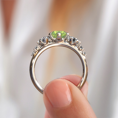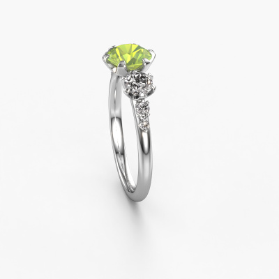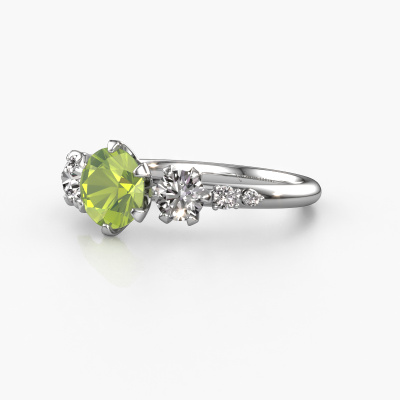 Le nom de cette bague de fiançailles est Aniek RND. Elle est forgée en or 14 Carat et est sertie d'un péridot de 6.5 mm. Comment décririez-vous le style de l'amour de votre vie ? Est-ce qu'elle aime quelque chose qui est juste un peu plus différent que d'habitude ? Cette bague de fiançailles forgée en or blanc avec élégants est une superbe bague que vous pouvez personnaliser à votre guise. Un péridot est utilisé dans cette bague de fiançailles fantaisie. Ces péridots ont été sélectionnés avec soin, car nous pensons que sur votre bague de fiançailles, seule les plus belle pierre précieuses peuvent y briller, n'est-ce pas ? Ce bijou est fabriquée spécialement pour vous par nos maîtres orfèvres dans notre propre atelier.Vous avez peut-être remarqué que nos prix sont en moyenne inférieurs de 30% à ceux d'un autre bijoutier. Et ce alors que la qualité de nos bijoux est même plus élevée dans la plupart des cas ! En effet, nos orfèvres fabriquent votre bague de fiançailles directement dans notre propre atelier. Cela signifie que nous n'avons pas à inclure des frais de stocks coûteux et que nous pouvons travailler n'importe quel détail directement sur votre bague de fiançailles. Avez-vous déjà des bague de fiançailles spécifiques en tête ? Une bague de fiançailles que vous avez vu quelque part. N'hésitez pas à nous faire part de vos souhaits et nous transformerons votre design en des bague de fiançailles uniques. Vous êtes en mesure de suivre l'évolution de la conception de vos bague de fiançailles car nous utilisons des dessins en 3D. Cela vous donnera un aperçu réaliste de votre design. Nous vous enverrons volontiers une offre sans engagement basée sur un rapport qualité / prix juste. Elle va vous étonner.Pour vous faciliter la tâche, vous pouvez facilement nous retourner tout bijou commandé dans les 30 jours suivant la livraison.