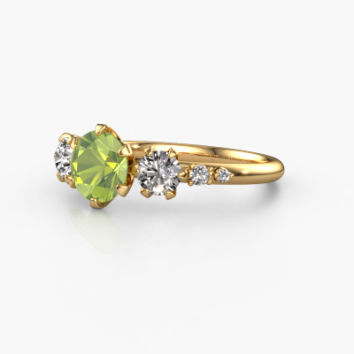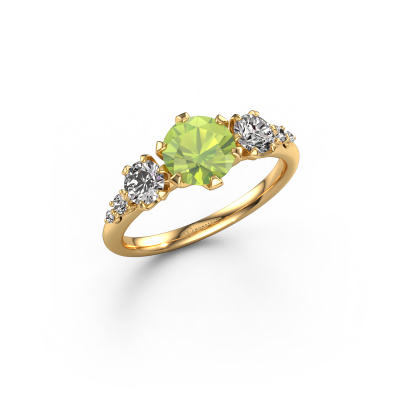 Le nom de cette bague de fiançailles est Aniek RND. Elle est forgée en or 14 Carat et est sertie d'un péridot de 6.5 mm. Comment décririez-vous le style de l'amour de votre vie ? Est-ce qu'elle aime quelque chose qui est juste un peu plus différent que d'habitude ? Cette bague de fiançailles forgée en or jaune avec élégants est une superbe bague que vous pouvez personnaliser à votre guise. Un péridot est utilisé dans cette bague de fiançailles fantaisie. Ces péridots ont été sélectionnés avec soin, car nous pensons que sur votre bague de fiançailles, seule les plus belle pierre précieuses peuvent y briller, n'est-ce pas ? Ce bijou est fabriquée spécialement pour vous par nos maîtres orfèvres dans notre propre atelier.Vous avez peut-être remarqué que nos prix sont en moyenne inférieurs de 30% à ceux d'un autre bijoutier. Et ce alors que la qualité de nos bijoux est même plus élevée dans la plupart des cas ! En effet, nos orfèvres fabriquent votre bague de fiançailles directement dans notre propre atelier. Cela signifie que nous n'avons pas à inclure des frais de stocks coûteux et que nous pouvons travailler n'importe quel détail directement sur votre bague de fiançailles. Avez-vous déjà des bague de fiançailles spécifiques en tête ? Une bague de fiançailles que vous avez vu quelque part. N'hésitez pas à nous faire part de vos souhaits et nous transformerons votre design en des bague de fiançailles uniques. Vous êtes en mesure de suivre l'évolution de la conception de vos bague de fiançailles car nous utilisons des dessins en 3D. Cela vous donnera un aperçu réaliste de votre design. Nous vous enverrons volontiers une offre sans engagement basée sur un rapport qualité / prix juste. Elle va vous étonner.Pour vous faciliter la tâche, vous pouvez facilement nous retourner tout bijou commandé dans les 30 jours suivant la livraison.