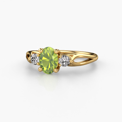 Cette bague de fiançailles porte le nom Amie OVL. Cette bague de fiançailles forgée en or 14 Carat est sertie d’un péridot de 7x5 mm. Qu'est-ce qui rend votre relation unique ? Qu'est-ce que qui fait que vous souhaitiez qu’elle devienne votre femmes ? Cet anneau unique que vous avez ensemble peut être reflété dans une bague unique. Une bague de fiançailles trois pierres unique qui est seulement créée pour elle. Et c'est la raison pour laquelle cette bague de fiançailles lui ira parfaitement. Chaque détail de cette bague de fiançailles ci-dessous forgée en or jaune sertie d’un péridot est composée, travaillée et polie à la main par notre orfèvre dans notre atelier. Le résultat final est une magnifique bague de fiançailles, unique et parfaitement forgée dans les moindres détails ! Ce résultat est ce que nos orfèvres recherchent à tout prix ! Ce bijou est fabriquées avec passion et amour par l'un de nos maîtres orfèvres.Qu'y a-t-il dorénavant de plus beau qu'une bague de fiançailles fantaisie conçue par vous-même et fabriquée à la main par nous. Vous pouvez personnaliser chaque modèle avec les différents métaux précieux et pierres précieuses. De cette façon, vous pourrez créer une bague de fiançailles unique. Cette bague peut être mise en place de plusieurs façons. Bien sûr, vous pouvez toujours nous contacter et nous serons heureux de vous aider à composer votre bague de fiançailles fantaisie Amie OVL. Vous aimez le design, mais vous souhaitez tout de même quelque chose qui vous convienne plus, ou bien vous souhaitez une pierre précieuse dans les bijoux que vous ne pouvez pas choisir sur notre site, contactez-nous et nous vous aiderons.Avez-vous déjà des bague de fiançailles spécifiques en tête ? Une bague de fiançailles que vous avez vu quelque part. N'hésitez pas à nous faire part de vos souhaits et nous transformerons votre design en des bague de fiançailles uniques. Vous êtes en mesure de suivre l'évolution de la conception de vos bague de fiançailles car nous utilisons des dessins en 3D. Cela vous donnera un aperçu réaliste de votre design. Nous vous enverrons volontiers une offre sans engagement basée sur un rapport qualité / prix juste. Elle va vous étonner.Pour vous faciliter la tâche, vous pouvez facilement nous retourner tout bijou commandé dans les 30 jours suivant la livraison.