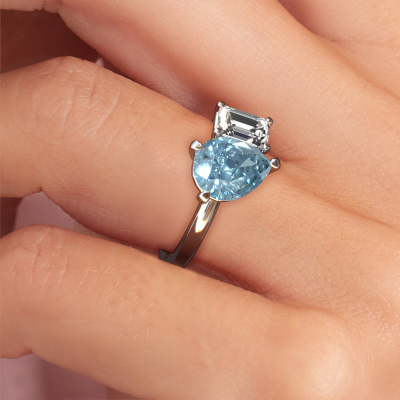 Nous appelons cette bague de fiançailles Toi et Moi PER-EME. Cette bague forgée en or est sertie d’un diamant synthétique bleu. Vous recherchez une bague de fiançailles forgée en platine unique et au look élégants ? Voici donc une belle bague magnifique que vous pouvez entièrement ajuster à votre goût. Un diamant synthétique bleu magnifique est utilisé dans cette bague de fiançailles élégants. Celui-ci est sélectionné avec soin, car seule les plus belles des pierres précieuses peuvent briller sur votre bague de fiançailles brillantes. Notre orfèvre fabrique votre bague de fiançailles dans notre propre atelier et place le diamant synthétique bleu dans la bague avec une précision extrême. Donc, la bague est travaillée et polie jusqu'à ce que le résultat désiré soit visible : la bague de fiançailles parfaite pour l'amour de votre vie ! En combinant les dernières techniques modernes, associées à une fabrication ancienne, nous sommes en mesure de fabriquer nos bagues de fiançailles dans notre propre studio. Chaque bijou est fabriqué sur commande. Ceci est avantageux car nous sommes en mesure de vous proposer un prix que vous ne trouverez nulle part ailleurs.Notre équipe ajoute quotidiennement de nouveaux modèles à notre collection en ligne. Nos designers et orfèvres travaillent ensemble pour créer le meilleur design. Nous nous efforçons d'offrir une collection diversifiée de bijoux. Peut-être avez-vous déjà en tête un bijou en particulier ? Un bijou que vous avez trouvé quelque part. Veuillez nous contacter pour une consultation gratuite. Nous vous ferons une offre, basée sur un rapport qualité / prix juste, qui vous déconcertera.Pour vous faciliter la tâche, vous pouvez facilement nous retourner tout bijou commandé dans les 30 jours suivant la livraison.