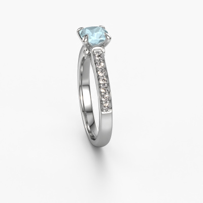 La bague de fiançailles mentionnée ci-dessus a été nommée Valorie cus 2. Ce type de bague de fiançailles est appelé une bague de fiançailles solitaire pavé car elle ne comporte qu’une seule pierre centrale et les tiges de la bague de fiançailles sont également pleins. La bague de fiançailles est faite dans une combinaison d'or et d’platine et a un aigue-marine coussin d’une de 5.5 mm, et des diamants sont sertis sur les épaules de l’anneau. Chaque bijou est fabriquées spécialement pour vous par nos maîtres orfèvres dans notre propre atelier. Cette bague de fiançailles solitaire pavé forgée en platine traditionnelles a un beau aigues-marines coussin comme pierre centrale, avec plus de aigues-marines sertis dans la bague pour accentuer encore plus la présence de la pierre centrale. Le sertissage à griffes autour du aigue-marine étant ouvert, le aigue-marine capte la lumière de tous les côtés et brille de manière optimale. Ci-dessus, vous pouvez voir comment notre orfèvre travaille la bague de fiançailles avec une extrême précision dans les moindres détails, de telle sorte que le aigue-marine élevé puisse attirer tous les regards. Quelle belle bague de fiançailles à offrir lors de votre demande en mariage à l'amour de votre vie, à votre centre rayonnant ! En combinant les dernières techniques modernes, associées à une fabrication ancienne, nous sommes en mesure de fabriquer nos bagues de fiançailles dans notre propre studio. Chaque bijou est fabriqué sur commande. Ceci est avantageux car nous sommes en mesure de vous proposer un prix que vous ne trouverez nulle part ailleurs.Notre équipe de designers talentueux et passionnés ajoute chaque jour de nouveaux modèles bague de fiançailles à notre collection en ligne. Notre objectif est de pouvoir vous offrir une grande variété de bijoux. N'hésitez pas à demander un devis si vous avez des souhaits spécifiques pour votre bague de fiançailles. Nous garantissons de vous faire une offre que vous ne pourrez pas refuser.Pour vous faciliter la tâche, vous pouvez facilement nous retourner tout bijou commandé dans les 30 jours suivant la livraison.