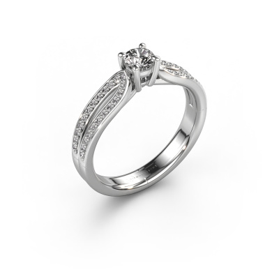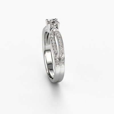 La bague de fiançailles mentionnée ci-dessus a été nommée Antonia rnd 2. Ce type de bague de fiançailles est appelé une bague de fiançailles solitaire pavé car elle ne comporte qu’une seule pierre centrale et les tiges de la bague de fiançailles sont également pleins. La bague de fiançailles est faite dans une combinaison d'or et d’platine et a un diamant ronds d’une de 0.25 crt, et des diamants sont sertis sur les épaules de l’anneau. Chaque bijou est spécialement conçues pour vous, avec une attention particulière portée aux détails et au design. Cette bague de fiançailles solitaire pavé forgée en platine traditionnelles a un beau diamants ronds comme pierre centrale, avec plus de diamants sertis dans la bague pour accentuer encore plus la présence de la pierre centrale. Le sertissage à griffes autour du diamant étant ouvert, le diamant capte la lumière de tous les côtés et brille de manière optimale. Ci-dessus, vous pouvez voir comment notre orfèvre travaille la bague de fiançailles avec une extrême précision dans les moindres détails, de telle sorte que le diamant élevé puisse attirer tous les regards. Quelle belle bague de fiançailles à offrir lors de votre demande en mariage à l'amour de votre vie, à votre centre rayonnant ! Nos orfèvres ne fabriqueront votre bague de fiançailles qu'une fois que vous l'aurez commandée. Nous ne faisons pas de stock. L'avantage de cela est que nous n'avons pas à inclure les frais de stockage dans nos prix, et nous pouvons donc vous offrir des bijoux à un prix très bas.Avez-vous déjà des bague de fiançailles spécifiques en tête ? Une bague de fiançailles que vous avez vu quelque part. N'hésitez pas à nous faire part de vos souhaits et nous transformerons votre design en des bague de fiançailles uniques. Vous êtes en mesure de suivre l'évolution de la conception de vos bague de fiançailles car nous utilisons des dessins en 3D. Cela vous donnera un aperçu réaliste de votre design. Nous vous enverrons volontiers une offre sans engagement basée sur un rapport qualité / prix juste. Elle va vous étonner.Pour vous faciliter la tâche, vous pouvez facilement nous retourner tout bijou commandé dans les 30 jours suivant la livraison.