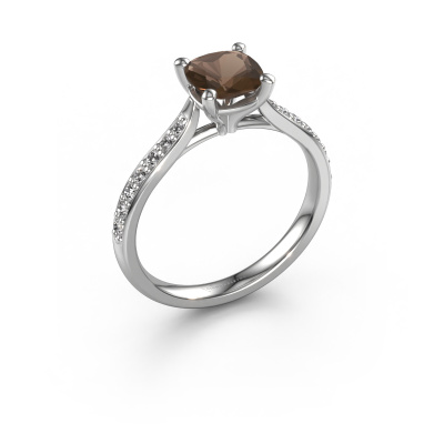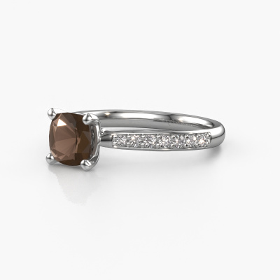 La bague de fiançailles mentionnée ci-dessus a été nommée Mignon cus 2. Ce type de bague de fiançailles est appelé une bague de fiançailles solitaire pavé car elle ne comporte qu’une seule pierre centrale et les tiges de la bague de fiançailles sont également pleins. La bague de fiançailles est faite dans une combinaison d'or et d’platine et a un quartz fumé coussin d’une de 6 mm, et des diamants synthétiques sont sertis sur les épaules de l’anneau. Chaque bijou est faite avec passion et amour par l'un de nos maîtres orfèvres. Cette bague de fiançailles solitaire pavé forgée en platine exclusives a un beau quartz fumé coussin comme pierre centrale, avec plus de quartz fumé sertis dans la bague pour accentuer encore plus la présence de la pierre centrale. Le sertissage à griffes autour du quartz fumé étant ouvert, le quartz fumé capte la lumière de tous les côtés et brille de manière optimale. Ci-dessus, vous pouvez voir comment notre orfèvre travaille la bague de fiançailles avec une extrême précision dans les moindres détails, de telle sorte que le quartz fumé élevé puisse attirer tous les regards. Quelle belle bague de fiançailles à offrir lors de votre demande en mariage à l'amour de votre vie, à votre centre rayonnant ! Nos orfèvres ne fabriqueront votre bague de fiançailles qu'une fois que vous l'aurez commandée. Nous ne faisons pas de stock. L'avantage de cela est que nous n'avons pas à inclure les frais de stockage dans nos prix, et nous pouvons donc vous offrir des bijoux à un prix très bas.Notre équipe ajoute quotidiennement de nouveaux modèles à notre collection en ligne. Nos designers et orfèvres travaillent ensemble pour créer le meilleur design. Nous nous efforçons d'offrir une collection diversifiée de bijoux. Peut-être avez-vous déjà en tête un bijou en particulier ? Un bijou que vous avez trouvé quelque part. Veuillez nous contacter pour une consultation gratuite. Nous vous ferons une offre, basée sur un rapport qualité / prix juste, qui vous déconcertera.Pour vous faciliter la tâche, vous pouvez facilement nous retourner tout bijou commandé dans les 30 jours suivant la livraison.