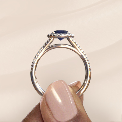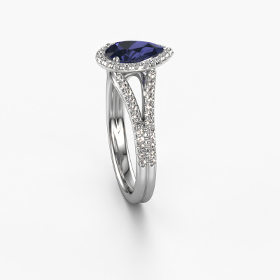 La bague de fiançailles mentionnée ci-dessus est nommée Verla pear 2. Nous appelons ce type de bague de fiançailles une bague Halo. La bague de fiançailles est forgée en or et comporte un saphir poire de la de 8x6 mm et autour duquel sont sertis de petits diamants. La largeur de cette bague de fiançailles halo forgée en platine exclusives vient des plus petites pierres précieuses qui sont serties autour du large saphir central. C’est également ce à partir de quoi cette belle bague de fiançailles tire son nom : halo signifie halo et c’est aussi l’effet que rendent les pierres précieuses plus petites. Cependant, ces pierres précieuses plus petites doivent toutes être serties de la même manière, afin que la lumière ne soit pas seulement introduite dans le saphir et qu’un véritable halo de lumière soit créé. Et c'est ce que font nos maîtres orfèvres. Avec la plus grande précision, chaque saphir soigneusement sélectionné est placé à la main dans la bague de fiançailles. Encore et encore, la bague de fiançailles est maintenue à la lumière pour voir si l'effet spécial est toujours visible. Le résultat est une bague de fiançailles unique, où le saphir choisi devient littéralement le centre brillants. Vous pouvez imaginer que cette bague de fiançailles est vraiment une bague de fiançailles significative à offrir à votre amour de la vie ! Le jour où vous montrez qu’elle est votre centre brillants ! Saviez-vous que nous offrons la garantie du meilleur prix pour votre bague de fiançailles? Cela est possible car tous nos bijoux sont fabriqués à la main dans notre propre atelier. Nous n'avons pas de frais de stocks qui sont coûteux, et nous fabriquons votre bague uniquement une fois que vous l'avez commandée. Grâce au fait que nous ayons toute la production du bijou en main, nous pouvons vous informer sur toutes les caractéristiques de cette bague de fiançailles. C’est précisément parce que l’achat d’une bague en ligne est une expérience excitante que nous comprenons qu’il est plus confortable pour vous de connaître toutes les caractéristiques de votre bague.Notre équipe de designers talentueux et passionnés ajoute chaque jour de nouveaux modèles bague de fiançailles à notre collection en ligne. Notre objectif est de pouvoir vous offrir une grande variété de bijoux. N'hésitez pas à demander un devis si vous avez des souhaits spécifiques pour votre bague de fiançailles. Nous garantissons de vous faire une offre que vous ne pourrez pas refuser.Pour vous faciliter la tâche, vous pouvez facilement nous retourner tout bijou commandé dans les 30 jours suivant la livraison.