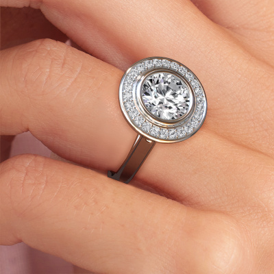 La bague de fiançailles mentionnée ci-dessus est nommée Noud 1 RND. Nous appelons ce type de bague de fiançailles une bague Halo. La bague de fiançailles est forgée en or et comporte un diamant ronds de la de 2.00 crt et autour duquel sont sertis de petits diamants. La largeur de cette bague de fiançailles halo forgée en platine traditionnelles vient des plus petites pierres précieuses qui sont serties autour du large diamant central. C’est également ce à partir de quoi cette belle bague de fiançailles tire son nom : halo signifie halo et c’est aussi l’effet que rendent les pierres précieuses plus petites. Cependant, ces pierres précieuses plus petites doivent toutes être serties de la même manière, afin que la lumière ne soit pas seulement introduite dans le diamant et qu’un véritable halo de lumière soit créé. Et c'est ce que font nos maîtres orfèvres. Avec la plus grande précision, chaque diamant soigneusement sélectionné est placé à la main dans la bague de fiançailles. Encore et encore, la bague de fiançailles est maintenue à la lumière pour voir si l'effet spécial est toujours visible. Le résultat est une bague de fiançailles unique, où le diamant choisi devient littéralement le centre brillants. Vous pouvez imaginer que cette bague de fiançailles est vraiment une bague de fiançailles significative à offrir à votre amour de la vie ! Le jour où vous montrez qu’elle est votre centre brillants ! En combinant les dernières techniques modernes, associées à une fabrication ancienne, nous sommes en mesure de fabriquer nos bagues de fiançailles dans notre propre studio. Chaque bijou est fabriqué sur commande. Ceci est avantageux car nous sommes en mesure de vous proposer un prix que vous ne trouverez nulle part ailleurs.Avez-vous déjà des bague de fiançailles spécifiques en tête ? Une bague de fiançailles que vous avez vu quelque part. N'hésitez pas à nous faire part de vos souhaits et nous transformerons votre design en des bague de fiançailles uniques. Vous êtes en mesure de suivre l'évolution de la conception de vos bague de fiançailles car nous utilisons des dessins en 3D. Cela vous donnera un aperçu réaliste de votre design. Nous vous enverrons volontiers une offre sans engagement basée sur un rapport qualité / prix juste. Elle va vous étonner.Pour vous faciliter la tâche, vous pouvez facilement nous retourner tout bijou commandé dans les 30 jours suivant la livraison.