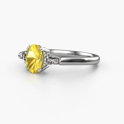Nous appelons cette bague de fiançailles Indy OVL. Cette bague forgée en or est sertie d’un saphir jaune. Vous recherchez une bague de fiançailles forgée en platine unique et au look exclusives ? Voici donc une belle bague magnifique que vous pouvez entièrement ajuster à votre goût. Un saphir jaune magnifique est utilisé dans cette bague de fiançailles exclusives. Celui-ci est sélectionné avec soin, car seule les plus belles des pierres précieuses peuvent briller sur votre bague de fiançailles élégants. Notre orfèvre fabrique votre bague de fiançailles dans notre propre atelier et place le saphir jaune dans la bague avec une précision extrême. Donc, la bague est travaillée et polie jusqu'à ce que le résultat désiré soit visible : la bague de fiançailles parfaite pour l'amour de votre vie ! Saviez-vous que nous offrons la garantie du meilleur prix pour votre bague de fiançailles? Cela est possible car tous nos bijoux sont fabriqués à la main dans notre propre atelier. Nous n'avons pas de frais de stocks qui sont coûteux, et nous fabriquons votre bague uniquement une fois que vous l'avez commandée. Grâce au fait que nous ayons toute la production du bijou en main, nous pouvons vous informer sur toutes les caractéristiques de cette bague de fiançailles. C’est précisément parce que l’achat d’une bague en ligne est une expérience excitante que nous comprenons qu’il est plus confortable pour vous de connaître toutes les caractéristiques de votre bague.Notre équipe ajoute quotidiennement de nouveaux modèles à notre collection en ligne. Nos designers et orfèvres travaillent ensemble pour créer le meilleur design. Nous nous efforçons d'offrir une collection diversifiée de bijoux. Peut-être avez-vous déjà en tête un bijou en particulier ? Un bijou que vous avez trouvé quelque part. Veuillez nous contacter pour une consultation gratuite. Nous vous ferons une offre, basée sur un rapport qualité / prix juste, qui vous déconcertera.Pour vous faciliter la tâche, vous pouvez facilement nous retourner tout bijou commandé dans les 30 jours suivant la livraison.
