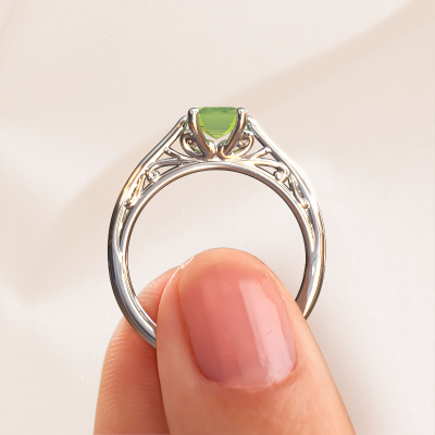 Cette bague de fiançailles porte le nom Shannon eme. Cette bague de fiançailles forgée en or est sertie d’un péridot. Cette bague de fiançailles unique est une large bague vintage forgée en platine qui laissera certainement briller l’amour de votre vie ! Et c'est exactement ce que nous avons comme objectif. De magnifiques péridots ont été sertis sur cette bague de fiançailles fantaisie. Vous pouvez, bien entendu, utiliser chaque pierre précieuse que nous proposons sur notre site. La pierre précieuse sera sélectionnée avec soin, car nous pensons que seule la plus belle des pierres précieuses peut briller sur votre bague de fiançailles, qu’en dites-vous ? Notre orfèvre fabrique votre bague de fiançailles dans notre propre atelier et place le péridot dans son anneau avec une précision extrême. Puis, elle est travaillée et polie jusqu'à ce que le résultat soit visible : la bague de fiançailles parfaite pour l'amour de votre vie ! Ce bijou est unique car vous pouvez entièrement l'assembler à votre guise.Vous avez peut-être remarqué que nos prix sont en moyenne inférieurs de 30% à ceux d'un autre bijoutier. Et ce alors que la qualité de nos bijoux est même plus élevée dans la plupart des cas ! En effet, nos orfèvres fabriquent votre bague de fiançailles directement dans notre propre atelier. Cela signifie que nous n'avons pas à inclure des frais de stocks coûteux et que nous pouvons travailler n'importe quel détail directement sur votre bague de fiançailles.Notre équipe de designers talentueux et passionnés ajoute chaque jour de nouveaux modèles bague de fiançailles à notre collection en ligne. Notre objectif est de pouvoir vous offrir une grande variété de bijoux. N'hésitez pas à demander un devis si vous avez des souhaits spécifiques pour votre bague de fiançailles. Nous garantissons de vous faire une offre que vous ne pourrez pas refuser.Pour vous faciliter la tâche, vous pouvez facilement nous retourner tout bijou commandé dans les 30 jours suivant la livraison.