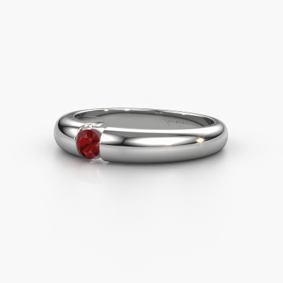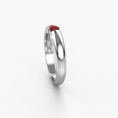 Nous appelons cette bague de fiançailles Amelia. Cette bague forgée en or est sertie d’un rubis. Vous recherchez une bague de fiançailles forgée en platine unique et au look modernes ? Voici donc une belle bague magnifique que vous pouvez entièrement ajuster à votre goût. Un rubis magnifique est utilisé dans cette bague de fiançailles modernes. Celui-ci est sélectionné avec soin, car seule les plus belles des pierres précieuses peuvent briller sur votre bague de fiançailles convexe. Notre orfèvre fabrique votre bague de fiançailles dans notre propre atelier et place le rubis dans la bague avec une précision extrême. Donc, la bague est travaillée et polie jusqu'à ce que le résultat désiré soit visible : la bague de fiançailles parfaite pour l'amour de votre vie ! En combinant les dernières techniques modernes, associées à une fabrication ancienne, nous sommes en mesure de fabriquer nos bagues de fiançailles dans notre propre studio. Chaque bijou est fabriqué sur commande. Ceci est avantageux car nous sommes en mesure de vous proposer un prix que vous ne trouverez nulle part ailleurs.Avez-vous déjà des bague de fiançailles spécifiques en tête ? Une bague de fiançailles que vous avez vu quelque part. N'hésitez pas à nous faire part de vos souhaits et nous transformerons votre design en des bague de fiançailles uniques. Vous êtes en mesure de suivre l'évolution de la conception de vos bague de fiançailles car nous utilisons des dessins en 3D. Cela vous donnera un aperçu réaliste de votre design. Nous vous enverrons volontiers une offre sans engagement basée sur un rapport qualité / prix juste. Elle va vous étonner.Pour vous faciliter la tâche, vous pouvez facilement nous retourner tout bijou commandé dans les 30 jours suivant la livraison.