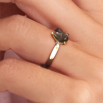 Nous avons donné le nom Mignon per 1 à la bague de fiançailles mentionnée ci-dessous. Ce type de bague de fiançailles est appelée une bague de fiançailles solitaire car elle ne contient qu’une seule pierre précieuse. La bague de fiançailles est forgée en or 14 Carat et comporte un quartz fumé poire d’une de 7x5 mm. L’avantage de notre outil de configuration est que vous pouvez choisir les éléments de votre propres bijou pour créer vous-même votre propre bijou. Cette bague de fiançailles solitaire est faite à partir d’une combinaison de métal précieux d’or et d’or jaune, mais vous pouvez également choisir un or d’une autre couleur. Chaque bijou est faite pour briller sur votre doigt, chaque bijou est fabriqué à la main par nos orfèvres. La bague de fiançailles solitaire est une large bague de fiançailles. C'est précisément grâce au fait que le sertissage de chaton soit ouvert que l'incidence de la lumière crée un effet magnifique sur la pierre précieuse. Puisque la pierre précieuse choisie est sertie en élévation sur la bague de fiançailles, cette bague de fiançailles classiques attirera tous les regards une loyautés finie. Nous fabriquerons tous les détails de cette bague de fiançailles solitaire avec le plus grand soin, afin que vous puissiez bientôt couronner votre demande en mariage avec une bague unique, en particulier pour l'amour de votre vie ! Nos orfèvres ne fabriqueront votre bague de fiançailles qu'une fois que vous l'aurez commandée. Nous ne faisons pas de stock. L'avantage de cela est que nous n'avons pas à inclure les frais de stockage dans nos prix, et nous pouvons donc vous offrir des bijoux à un prix très bas.Notre équipe ajoute quotidiennement de nouveaux modèles à notre collection en ligne. Nos designers et orfèvres travaillent ensemble pour créer le meilleur design. Nous nous efforçons d'offrir une collection diversifiée de bijoux. Peut-être avez-vous déjà en tête un bijou en particulier ? Un bijou que vous avez trouvé quelque part. Veuillez nous contacter pour une consultation gratuite. Nous vous ferons une offre, basée sur un rapport qualité / prix juste, qui vous déconcertera.Pour vous faciliter la tâche, vous pouvez facilement nous retourner tout bijou commandé dans les 30 jours suivant la livraison.
