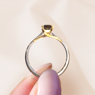 Nous avons donné le nom Mia Square à la bague de fiançailles mentionnée ci-dessous. Ce type de bague de fiançailles est appelée une bague de fiançailles solitaire car elle ne contient qu’une seule pierre précieuse. La bague de fiançailles est forgée en or 14 Carat et comporte un quartz fumé princesse d’une de 4 mm. L’avantage de notre outil de configuration est que vous pouvez choisir les éléments de votre propres bijou pour créer vous-même votre propre bijou. Cette bague de fiançailles solitaire est faite à partir d’une combinaison de métal précieux d’or et d’or jaune, mais vous pouvez également choisir un or d’une autre couleur. Chaque bijou est fabriquée par une équipe d'orfèvres et de designers motivés. Cela permettra à cette pièce unique d'attirer tous les regards. La bague de fiançailles solitaire est une large bague de fiançailles. C'est précisément grâce au fait que le sertissage de chaton soit ouvert que l'incidence de la lumière crée un effet magnifique sur la pierre précieuse. Puisque la pierre précieuse choisie est sertie en élévation sur la bague de fiançailles, cette bague de fiançailles modernes attirera tous les regards une loyautés finie. Nous fabriquerons tous les détails de cette bague de fiançailles solitaire avec le plus grand soin, afin que vous puissiez bientôt couronner votre demande en mariage avec une bague unique, en particulier pour l'amour de votre vie ! Qu'y a-t-il dorénavant de plus beau qu'une bague de fiançailles modernes conçue par vous-même et fabriquée à la main par nous. Vous pouvez personnaliser chaque modèle avec les différents métaux précieux et pierres précieuses. De cette façon, vous pourrez créer une bague de fiançailles unique. Cette bague peut être mise en place de plusieurs façons. Bien sûr, vous pouvez toujours nous contacter et nous serons heureux de vous aider à composer votre bague de fiançailles modernes Mia Square. Vous aimez le design, mais vous souhaitez tout de même quelque chose qui vous convienne plus, ou bien vous souhaitez une pierre précieuse dans les bijoux que vous ne pouvez pas choisir sur notre site, contactez-nous et nous vous aiderons.Avez-vous déjà des bague de fiançailles spécifiques en tête ? Une bague de fiançailles que vous avez vu quelque part. N'hésitez pas à nous faire part de vos souhaits et nous transformerons votre design en des bague de fiançailles uniques. Vous êtes en mesure de suivre l'évolution de la conception de vos bague de fiançailles car nous utilisons des dessins en 3D. Cela vous donnera un aperçu réaliste de votre design. Nous vous enverrons volontiers une offre sans engagement basée sur un rapport qualité / prix juste. Elle va vous étonner.Pour vous faciliter la tâche, vous pouvez facilement nous retourner tout bijou commandé dans les 30 jours suivant la livraison.