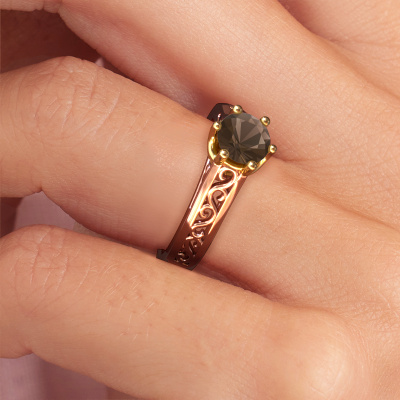 Nous avons donné le nom Shan à la bague de fiançailles mentionnée ci-dessous. Ce type de bague de fiançailles est appelée une bague de fiançailles solitaire car elle ne contient qu’une seule pierre précieuse. La bague de fiançailles est forgée en or 14 Carat et comporte un quartz fumé ronds d’une de 6 mm. L’avantage de notre outil de configuration est que vous pouvez choisir les éléments de votre propres bijou pour créer vous-même votre propre bijou. Cette bague de fiançailles solitaire est faite à partir d’une combinaison de métal précieux d’or et d’or jaune, mais vous pouvez également choisir un or d’une autre couleur. Chaque bijou est fabriquée par une équipe d'orfèvres et de designers motivés. Cela permettra à cette pièce unique d'attirer tous les regards. La bague de fiançailles solitaire est une large bague de fiançailles. C'est précisément grâce au fait que le sertissage de chaton soit ouvert que l'incidence de la lumière crée un effet magnifique sur la pierre précieuse. Puisque la pierre précieuse choisie est sertie en élévation sur la bague de fiançailles, cette bague de fiançailles Celtiques attirera tous les regards une loyautés finie. Nous fabriquerons tous les détails de cette bague de fiançailles solitaire avec le plus grand soin, afin que vous puissiez bientôt couronner votre demande en mariage avec une bague unique, en particulier pour l'amour de votre vie ! Qu'y a-t-il dorénavant de plus beau qu'une bague de fiançailles Celtiques conçue par vous-même et fabriquée à la main par nous. Vous pouvez personnaliser chaque modèle avec les différents métaux précieux et pierres précieuses. De cette façon, vous pourrez créer une bague de fiançailles unique. Cette bague peut être mise en place de plusieurs façons. Bien sûr, vous pouvez toujours nous contacter et nous serons heureux de vous aider à composer votre bague de fiançailles Celtiques Shan. Vous aimez le design, mais vous souhaitez tout de même quelque chose qui vous convienne plus, ou bien vous souhaitez une pierre précieuse dans les bijoux que vous ne pouvez pas choisir sur notre site, contactez-nous et nous vous aiderons.Avez-vous déjà des bague de fiançailles spécifiques en tête ? Une bague de fiançailles que vous avez vu quelque part. N'hésitez pas à nous faire part de vos souhaits et nous transformerons votre design en des bague de fiançailles uniques. Vous êtes en mesure de suivre l'évolution de la conception de vos bague de fiançailles car nous utilisons des dessins en 3D. Cela vous donnera un aperçu réaliste de votre design. Nous vous enverrons volontiers une offre sans engagement basée sur un rapport qualité / prix juste. Elle va vous étonner.Pour vous faciliter la tâche, vous pouvez facilement nous retourner tout bijou commandé dans les 30 jours suivant la livraison.