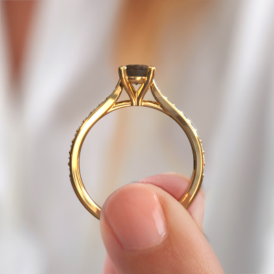 Nous avons donné le nom Mignon ovl 2 à la bague de fiançailles mentionnée ci-dessous. Ce type de bague de fiançailles est appelée une bague de fiançailles solitaire car elle ne contient qu’une seule pierre précieuse. La bague de fiançailles est forgée en or 14 Carat et comporte un quartz fumé ovale d’une de 7x5 mm. L’avantage de notre outil de configuration est que vous pouvez choisir les éléments de votre propres bijou pour créer vous-même votre propre bijou. Cette bague de fiançailles solitaire est faite à partir d’une combinaison de métal précieux d’or et d’or jaune, mais vous pouvez également choisir un or d’une autre couleur. Chaque bijou est faite avec passion et amour par l'un de nos maîtres orfèvres. La bague de fiançailles solitaire est une large bague de fiançailles. C'est précisément grâce au fait que le sertissage de chaton soit ouvert que l'incidence de la lumière crée un effet magnifique sur la pierre précieuse. Puisque la pierre précieuse choisie est sertie en élévation sur la bague de fiançailles, cette bague de fiançailles élégants attirera tous les regards une loyautés finie. Nous fabriquerons tous les détails de cette bague de fiançailles solitaire avec le plus grand soin, afin que vous puissiez bientôt couronner votre demande en mariage avec une bague unique, en particulier pour l'amour de votre vie ! Saviez-vous que nous offrons la garantie du meilleur prix pour votre bague de fiançailles? Cela est possible car tous nos bijoux sont fabriqués à la main dans notre propre atelier. Nous n'avons pas de frais de stocks qui sont coûteux, et nous fabriquons votre bague uniquement une fois que vous l'avez commandée. Grâce au fait que nous ayons toute la production du bijou en main, nous pouvons vous informer sur toutes les caractéristiques de cette bague de fiançailles. C’est précisément parce que l’achat d’une bague en ligne est une expérience excitante que nous comprenons qu’il est plus confortable pour vous de connaître toutes les caractéristiques de votre bague.Notre équipe ajoute quotidiennement de nouveaux modèles à notre collection en ligne. Nos designers et orfèvres travaillent ensemble pour créer le meilleur design. Nous nous efforçons d'offrir une collection diversifiée de bijoux. Peut-être avez-vous déjà en tête un bijou en particulier ? Un bijou que vous avez trouvé quelque part. Veuillez nous contacter pour une consultation gratuite. Nous vous ferons une offre, basée sur un rapport qualité / prix juste, qui vous déconcertera.Pour vous faciliter la tâche, vous pouvez facilement nous retourner tout bijou commandé dans les 30 jours suivant la livraison.