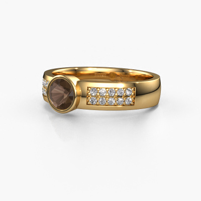 La bague de fiançailles mentionnée ci-dessus a été nommée Ise 3. Ce type de bague de fiançailles est appelé une bague de fiançailles solitaire pavé car elle ne comporte qu’une seule pierre centrale et les tiges de la bague de fiançailles sont également pleins. La bague de fiançailles est faite dans une combinaison d'or 14 Carat et d’or jaune et a un quartz fumé ronds d’une de 4.7 mm, et des diamants sont sertis sur les épaules de l’anneau. Chaque bijou est fabriquée spécialement pour vous par nos maîtres orfèvres dans notre propre atelier. Cette bague de fiançailles solitaire pavé forgée en or jaune modernes a un beau quartz fumé ronds comme pierre centrale, avec plus de quartz fumé sertis dans la bague pour accentuer encore plus la présence de la pierre centrale. Le sertissage à griffes autour du quartz fumé étant ouvert, le quartz fumé capte la lumière de tous les côtés et brille de manière optimale. Ci-dessus, vous pouvez voir comment notre orfèvre travaille la bague de fiançailles avec une extrême précision dans les moindres détails, de telle sorte que le quartz fumé élevé puisse attirer tous les regards. Quelle belle bague de fiançailles à offrir lors de votre demande en mariage à l'amour de votre vie, à votre centre rayonnant ! Puisque nous concevons et livrons nos propres bijoux, nous sommes en mesure de vous proposer une bague de fiançailles à un prix que vous ne pourrez pas trouver ailleurs. Une alliance est fabriquée sur commande, ce qui permet d'éviter les excédents de matériel et nous permet de vous proposer une superbe offre de prix. Nous comprenons qu'acheter votre bague de fiançailles en ligne soit un risque, mais nous vous assistons volontiers dans le processus de conception, en tenant compte de votre budget.Notre équipe ajoute quotidiennement de nouveaux modèles à notre collection en ligne. Nos designers et orfèvres travaillent ensemble pour créer le meilleur design. Nous nous efforçons d'offrir une collection diversifiée de bijoux. Peut-être avez-vous déjà en tête un bijou en particulier ? Un bijou que vous avez trouvé quelque part. Veuillez nous contacter pour une consultation gratuite. Nous vous ferons une offre, basée sur un rapport qualité / prix juste, qui vous déconcertera.Pour vous faciliter la tâche, vous pouvez facilement nous retourner tout bijou commandé dans les 30 jours suivant la livraison.