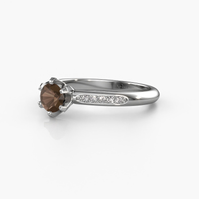 Nous avons donné le nom Tiffy 2 à la bague de fiançailles mentionnée ci-dessous. Ce type de bague de fiançailles est appelé une bague de fiançailles solitaire pavé car elle ne comporte qu’une seule pierre centrale et les tiges de la bague de fiançailles ont également une finition pleine. Cette bague de fiançailles est forgée en or et comporte un quartz fumé ronds de 4.7 mm. Des diamants sont sertis dans les épaules latérales de l’anneau. Chaque bijou est faite pour briller sur votre doigt, chaque bijou est fabriqué à la main par nos orfèvres.. Cette bague de fiançailles solitaire pavé forgée en platine traditionnelles a un beau quartz fumé ronds en guise de pierre centrale, avec plus de diamants dans l’anneau pour accentuer encore plus l’effet de la pierre centrale. Le sertissage à griffes autour du quartz fumé étant ouvert, le quartz fumé capte la lumière de tous les côtés et brille de manière optimale. Ci-dessus, vous pouvez voir comment notre orfèvre a travaillé la bague de fiançailles dans les moindres détails. de telle sorte que le quartz fumé élevé puisse véritablement attirer tous les regards. Quelle belle bague de fiançailles à offre lors de votre demande en mariage à l'amour de votre vie, à votre centre rayonnant ! Qu'y a-t-il dorénavant de plus beau qu'une bague de fiançailles traditionnelles conçue par vous-même et fabriquée à la main par nous. Vous pouvez personnaliser chaque modèle avec les différents métaux précieux et pierres précieuses. De cette façon, vous pourrez créer une bague de fiançailles unique. Cette bague peut être mise en place de plusieurs façons. Bien sûr, vous pouvez toujours nous contacter et nous serons heureux de vous aider à composer votre bague de fiançailles traditionnelles Tiffy 2. Vous aimez le design, mais vous souhaitez tout de même quelque chose qui vous convienne plus, ou bien vous souhaitez une pierre précieuse dans les bijoux que vous ne pouvez pas choisir sur notre site, contactez-nous et nous vous aiderons.Notre équipe de designers talentueux et passionnés ajoute chaque jour de nouveaux modèles bague de fiançailles à notre collection en ligne. Notre objectif est de pouvoir vous offrir une grande variété de bijoux. N'hésitez pas à demander un devis si vous avez des souhaits spécifiques pour votre bague de fiançailles. Nous garantissons de vous faire une offre que vous ne pourrez pas refuser.Pour vous faciliter la tâche, vous pouvez facilement nous retourner tout bijou commandé dans les 30 jours suivant la livraison.