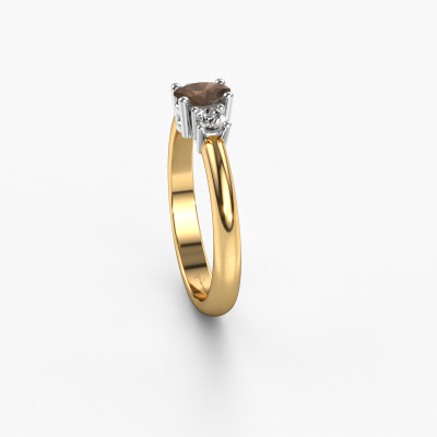 Le nom de cette bague de fiançailles est Karie. Elle est forgée en or 14 Carat et est sertie d'un quartz fumé de 5x3 mm. Comment décririez-vous le style de l'amour de votre vie ? Est-ce qu'elle aime quelque chose qui est juste un peu plus différent que d'habitude ? Cette bague de fiançailles forgée en or jaune avec ajour est une superbe bague que vous pouvez personnaliser à votre guise. Un quartz fumé est utilisé dans cette bague de fiançailles traditionnelles. Ces quartz fumé ont été sélectionnés avec soin, car nous pensons que sur votre bague de fiançailles, seule les plus belle pierre précieuses peuvent y briller, n'est-ce pas ? Ce bijou est fabriquée spécialement pour vous par nos maîtres orfèvres dans notre propre atelier.Saviez-vous que nous offrons la garantie du meilleur prix pour votre bague de fiançailles? Cela est possible car tous nos bijoux sont fabriqués à la main dans notre propre atelier. Nous n'avons pas de frais de stocks qui sont coûteux, et nous fabriquons votre bague uniquement une fois que vous l'avez commandée. Grâce au fait que nous ayons toute la production du bijou en main, nous pouvons vous informer sur toutes les caractéristiques de cette bague de fiançailles. C’est précisément parce que l’achat d’une bague en ligne est une expérience excitante que nous comprenons qu’il est plus confortable pour vous de connaître toutes les caractéristiques de votre bague. Avez-vous déjà des bague de fiançailles spécifiques en tête ? Une bague de fiançailles que vous avez vu quelque part. N'hésitez pas à nous faire part de vos souhaits et nous transformerons votre design en des bague de fiançailles uniques. Vous êtes en mesure de suivre l'évolution de la conception de vos bague de fiançailles car nous utilisons des dessins en 3D. Cela vous donnera un aperçu réaliste de votre design. Nous vous enverrons volontiers une offre sans engagement basée sur un rapport qualité / prix juste. Elle va vous étonner.Pour vous faciliter la tâche, vous pouvez facilement nous retourner tout bijou commandé dans les 30 jours suivant la livraison.