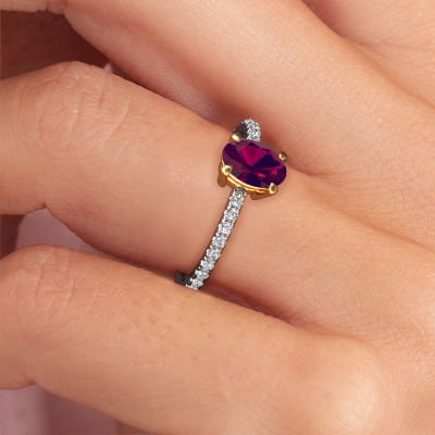 Nous avons donné le nom Lynelle 2 à la bague de fiançailles mentionnée ci-dessous. Ce type de bague de fiançailles est appelé une bague de fiançailles solitaire pavé car elle ne comporte qu’une seule pierre centrale et les tiges de la bague de fiançailles ont également une finition pleine. Cette bague de fiançailles est forgée en or 14 Carat et comporte un rhodolite ovale de 7x5 mm. Des diamants sont sertis dans les épaules latérales de l’anneau. Chaque bijou est faite pour briller sur votre doigt, chaque bijou est fabriqué à la main par nos orfèvres.. Cette bague de fiançailles solitaire pavé forgée en or blanc classiques a un beau rhodolite ovale en guise de pierre centrale, avec plus de diamants dans l’anneau pour accentuer encore plus l’effet de la pierre centrale. Le sertissage à griffes autour du rhodolite étant ouvert, le rhodolite capte la lumière de tous les côtés et brille de manière optimale. Ci-dessus, vous pouvez voir comment notre orfèvre a travaillé la bague de fiançailles dans les moindres détails. de telle sorte que le rhodolite élevé puisse véritablement attirer tous les regards. Quelle belle bague de fiançailles à offre lors de votre demande en mariage à l'amour de votre vie, à votre centre rayonnant ! Nos orfèvres ne fabriqueront votre bague de fiançailles qu'une fois que vous l'aurez commandée. Nous ne faisons pas de stock. L'avantage de cela est que nous n'avons pas à inclure les frais de stockage dans nos prix, et nous pouvons donc vous offrir des bijoux à un prix très bas.Avez-vous déjà des bague de fiançailles spécifiques en tête ? Une bague de fiançailles que vous avez vu quelque part. N'hésitez pas à nous faire part de vos souhaits et nous transformerons votre design en des bague de fiançailles uniques. Vous êtes en mesure de suivre l'évolution de la conception de vos bague de fiançailles car nous utilisons des dessins en 3D. Cela vous donnera un aperçu réaliste de votre design. Nous vous enverrons volontiers une offre sans engagement basée sur un rapport qualité / prix juste. Elle va vous étonner.Pour vous faciliter la tâche, vous pouvez facilement nous retourner tout bijou commandé dans les 30 jours suivant la livraison.