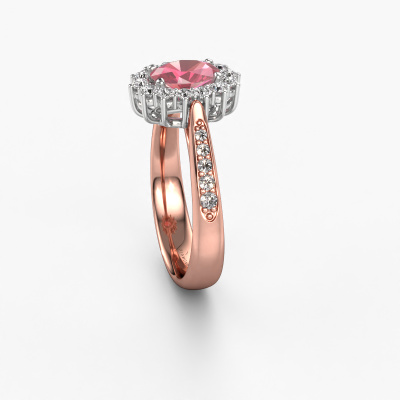 La bague de fiançailles mentionnée ci-dessus a pour nom Margien 2. Nous appelons ce type de bague de fiançailles Lady Diana, dans laquelle des petites pierres précieuses sont placées autour de la pierre centrale dans un sertissage ouvert. Cette bague en or 14 Carat a un rose tourmaline ovale de 7x5 mm en tant que pierre centrale qui est entourée par de petits diamants. Vous la connaissez, cette belle bague de fiançailles en or rose Lady Diana et traditionnelles... la plus connue et dont on a le plus parlé dans le monde, pour la plus grande personne dans votre vie ! Ce qui est spécial au sujet de cette bague de fiançailles Lady Diana est le magnifique rose tourmaline serti au centre. Les petites pierres précieuses sont serties sur la bague de fiançailles pour renforcer grâce à l'éclat du rose tourmaline comme pierre centrale, ce qui vous fait penser que vous portez un grand bijou. Avec conception de cette bague de fiançailles style Lady Di, cet effet est encore plus renforcé. La largeur est que nos orfèvres travaillent cette bague de fiançailles pour la rendre aussi unique que vous. Puisque nous forgeons la bague de fiançailles Lady Diana à la main dans notre propre atelier, nous pouvons la personnaliser exactement comme vous l'avez à l'esprit. Ce bijou est faite pour briller sur votre doigt, chaque bijou est fabriqué à la main par nos orfèvres. Vous avez peut-être remarqué que nos prix sont en moyenne inférieurs de 30% à ceux d'un autre bijoutier. Et ce alors que la qualité de nos bijoux est même plus élevée dans la plupart des cas ! En effet, nos orfèvres fabriquent votre bague de fiançailles directement dans notre propre atelier. Cela signifie que nous n'avons pas à inclure des frais de stocks coûteux et que nous pouvons travailler n'importe quel détail directement sur votre bague de fiançailles. Notre équipe ajoute quotidiennement de nouveaux modèles à notre collection en ligne. Nos designers et orfèvres travaillent ensemble pour créer le meilleur design. Nous nous efforçons d'offrir une collection diversifiée de bijoux. Peut-être avez-vous déjà en tête un bijou en particulier ? Un bijou que vous avez trouvé quelque part. Veuillez nous contacter pour une consultation gratuite. Nous vous ferons une offre, basée sur un rapport qualité / prix juste, qui vous déconcertera. Pour vous faciliter la tâche, vous pouvez facilement nous retourner tout bijou commandé dans les 30 jours suivant la livraison.