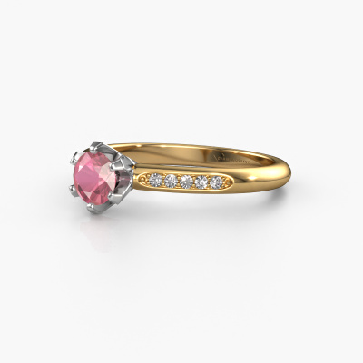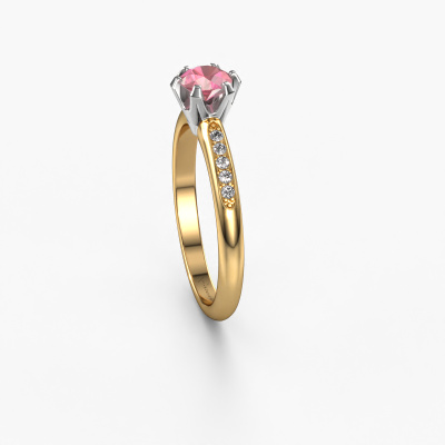 Nous avons donné le nom Tiffy 2 à la bague de fiançailles mentionnée ci-dessous. Ce type de bague de fiançailles est appelé une bague de fiançailles solitaire pavé car elle ne comporte qu’une seule pierre centrale et les tiges de la bague de fiançailles ont également une finition pleine. Cette bague de fiançailles est forgée en or 14 Carat et comporte un rose tourmaline ronds de 4.7 mm. Des diamants sont sertis dans les épaules latérales de l’anneau. Chaque bijou est faite pour briller sur votre doigt, chaque bijou est fabriqué à la main par nos orfèvres.. Cette bague de fiançailles solitaire pavé forgée en or jaune traditionnelles a un beau rose tourmaline ronds en guise de pierre centrale, avec plus de diamants dans l’anneau pour accentuer encore plus l’effet de la pierre centrale. Le sertissage à griffes autour du rose tourmaline étant ouvert, le rose tourmaline capte la lumière de tous les côtés et brille de manière optimale. Ci-dessus, vous pouvez voir comment notre orfèvre a travaillé la bague de fiançailles dans les moindres détails. de telle sorte que le rose tourmaline élevé puisse véritablement attirer tous les regards. Quelle belle bague de fiançailles à offre lors de votre demande en mariage à l'amour de votre vie, à votre centre rayonnant ! Qu'y a-t-il dorénavant de plus beau qu'une bague de fiançailles traditionnelles conçue par vous-même et fabriquée à la main par nous. Vous pouvez personnaliser chaque modèle avec les différents métaux précieux et pierres précieuses. De cette façon, vous pourrez créer une bague de fiançailles unique. Cette bague peut être mise en place de plusieurs façons. Bien sûr, vous pouvez toujours nous contacter et nous serons heureux de vous aider à composer votre bague de fiançailles traditionnelles Tiffy 2. Vous aimez le design, mais vous souhaitez tout de même quelque chose qui vous convienne plus, ou bien vous souhaitez une pierre précieuse dans les bijoux que vous ne pouvez pas choisir sur notre site, contactez-nous et nous vous aiderons.Notre équipe de designers talentueux et passionnés ajoute chaque jour de nouveaux modèles bague de fiançailles à notre collection en ligne. Notre objectif est de pouvoir vous offrir une grande variété de bijoux. N'hésitez pas à demander un devis si vous avez des souhaits spécifiques pour votre bague de fiançailles. Nous garantissons de vous faire une offre que vous ne pourrez pas refuser.Pour vous faciliter la tâche, vous pouvez facilement nous retourner tout bijou commandé dans les 30 jours suivant la livraison.