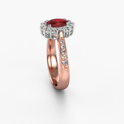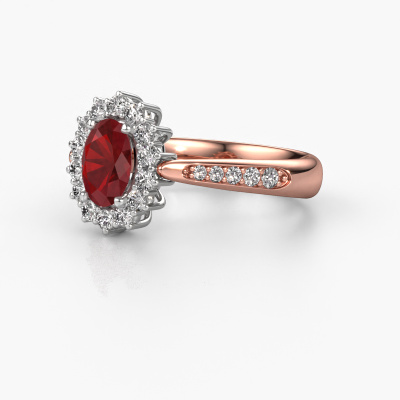 La bague de fiançailles mentionnée ci-dessus a pour nom Margien 2. Nous appelons ce type de bague de fiançailles Lady Diana, dans laquelle des petites pierres précieuses sont placées autour de la pierre centrale dans un sertissage ouvert. Cette bague en or 14 Carat a un rubis ovale de 7x5 mm en tant que pierre centrale qui est entourée par de petits diamants. Vous la connaissez, cette belle bague de fiançailles en or rose Lady Diana et traditionnelles... la plus connue et dont on a le plus parlé dans le monde, pour la plus grande personne dans votre vie ! Ce qui est spécial au sujet de cette bague de fiançailles Lady Diana est le magnifique rubis serti au centre. Les petites pierres précieuses sont serties sur la bague de fiançailles pour renforcer grâce à l'éclat du rubis comme pierre centrale, ce qui vous fait penser que vous portez un grand bijou. Avec conception de cette bague de fiançailles style Lady Di, cet effet est encore plus renforcé. La largeur est que nos orfèvres travaillent cette bague de fiançailles pour la rendre aussi unique que vous. Puisque nous forgeons la bague de fiançailles Lady Diana à la main dans notre propre atelier, nous pouvons la personnaliser exactement comme vous l'avez à l'esprit. Ce bijou est faite pour briller sur votre doigt, chaque bijou est fabriqué à la main par nos orfèvres. Vous avez peut-être remarqué que nos prix sont en moyenne inférieurs de 30% à ceux d'un autre bijoutier. Et ce alors que la qualité de nos bijoux est même plus élevée dans la plupart des cas ! En effet, nos orfèvres fabriquent votre bague de fiançailles directement dans notre propre atelier. Cela signifie que nous n'avons pas à inclure des frais de stocks coûteux et que nous pouvons travailler n'importe quel détail directement sur votre bague de fiançailles. Notre équipe ajoute quotidiennement de nouveaux modèles à notre collection en ligne. Nos designers et orfèvres travaillent ensemble pour créer le meilleur design. Nous nous efforçons d'offrir une collection diversifiée de bijoux. Peut-être avez-vous déjà en tête un bijou en particulier ? Un bijou que vous avez trouvé quelque part. Veuillez nous contacter pour une consultation gratuite. Nous vous ferons une offre, basée sur un rapport qualité / prix juste, qui vous déconcertera. Pour vous faciliter la tâche, vous pouvez facilement nous retourner tout bijou commandé dans les 30 jours suivant la livraison.