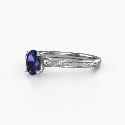 Nous avons donné le nom Elenore ovl à la bague de fiançailles mentionnée ci-dessous. Ce type de bague de fiançailles est appelé une bague de fiançailles solitaire pavé car elle ne comporte qu’une seule pierre centrale et les tiges de la bague de fiançailles ont également une finition pleine. Cette bague de fiançailles est forgée en or 14 Carat et comporte un saphir ovale de 6.5x4.5 mm. Des diamants sont sertis dans les épaules latérales de l’anneau. Chaque bijou est fabriquée par une équipe d'orfèvres et de designers motivés. Cela permettra à cette pièce unique d'attirer tous les regards.. Cette bague de fiançailles solitaire pavé forgée en or blanc exclusives a un beau saphir ovale en guise de pierre centrale, avec plus de diamants dans l’anneau pour accentuer encore plus l’effet de la pierre centrale. Le sertissage à griffes autour du saphir étant ouvert, le saphir capte la lumière de tous les côtés et brille de manière optimale. Ci-dessus, vous pouvez voir comment notre orfèvre a travaillé la bague de fiançailles dans les moindres détails. de telle sorte que le saphir élevé puisse véritablement attirer tous les regards. Quelle belle bague de fiançailles à offre lors de votre demande en mariage à l'amour de votre vie, à votre centre rayonnant ! Nos orfèvres ne fabriqueront votre bague de fiançailles qu'une fois que vous l'aurez commandée. Nous ne faisons pas de stock. L'avantage de cela est que nous n'avons pas à inclure les frais de stockage dans nos prix, et nous pouvons donc vous offrir des bijoux à un prix très bas.Avez-vous déjà des bague de fiançailles spécifiques en tête ? Une bague de fiançailles que vous avez vu quelque part. N'hésitez pas à nous faire part de vos souhaits et nous transformerons votre design en des bague de fiançailles uniques. Vous êtes en mesure de suivre l'évolution de la conception de vos bague de fiançailles car nous utilisons des dessins en 3D. Cela vous donnera un aperçu réaliste de votre design. Nous vous enverrons volontiers une offre sans engagement basée sur un rapport qualité / prix juste. Elle va vous étonner.Pour vous faciliter la tâche, vous pouvez facilement nous retourner tout bijou commandé dans les 30 jours suivant la livraison.