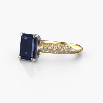 La bague de fiançailles mentionnée ci-dessus a été nommée Morane EME. Ce type de bague de fiançailles est appelé une bague de fiançailles solitaire pavé car elle ne comporte qu’une seule pierre centrale et les tiges de la bague de fiançailles sont également pleins. La bague de fiançailles est faite dans une combinaison d'or 14 Carat et d’or blanc et a un saphir taille émeraude d’une de 8x6 mm, et des diamants synthétiques sont sertis sur les épaules de l’anneau. Chaque bijou est fabriquée spécialement pour vous par nos maîtres orfèvres dans notre propre atelier. Cette bague de fiançailles solitaire pavé forgée en or jaune uniques a un beau saphir taille émeraude comme pierre centrale, avec plus de saphir sertis dans la bague pour accentuer encore plus la présence de la pierre centrale. Le sertissage à griffes autour du saphir étant ouvert, le saphir capte la lumière de tous les côtés et brille de manière optimale. Ci-dessus, vous pouvez voir comment notre orfèvre travaille la bague de fiançailles avec une extrême précision dans les moindres détails, de telle sorte que le saphir élevé puisse attirer tous les regards. Quelle belle bague de fiançailles à offrir lors de votre demande en mariage à l'amour de votre vie, à votre centre rayonnant ! Saviez-vous que nous offrons la garantie du meilleur prix pour votre bague de fiançailles? Cela est possible car tous nos bijoux sont fabriqués à la main dans notre propre atelier. Nous n'avons pas de frais de stocks qui sont coûteux, et nous fabriquons votre bague uniquement une fois que vous l'avez commandée. Grâce au fait que nous ayons toute la production du bijou en main, nous pouvons vous informer sur toutes les caractéristiques de cette bague de fiançailles. C’est précisément parce que l’achat d’une bague en ligne est une expérience excitante que nous comprenons qu’il est plus confortable pour vous de connaître toutes les caractéristiques de votre bague.Notre équipe ajoute quotidiennement de nouveaux modèles à notre collection en ligne. Nos designers et orfèvres travaillent ensemble pour créer le meilleur design. Nous nous efforçons d'offrir une collection diversifiée de bijoux. Peut-être avez-vous déjà en tête un bijou en particulier ? Un bijou que vous avez trouvé quelque part. Veuillez nous contacter pour une consultation gratuite. Nous vous ferons une offre, basée sur un rapport qualité / prix juste, qui vous déconcertera.Pour vous faciliter la tâche, vous pouvez facilement nous retourner tout bijou commandé dans les 30 jours suivant la livraison.