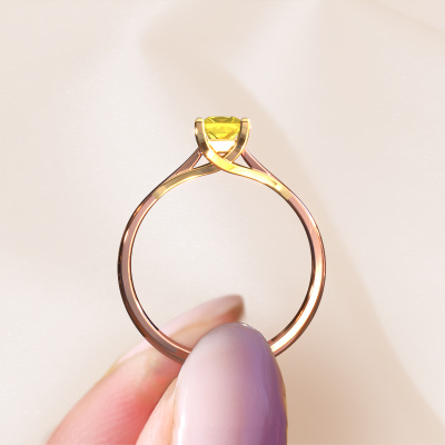 Nous avons donné le nom Mia Square à la bague de fiançailles mentionnée ci-dessous. Ce type de bague de fiançailles est appelée une bague de fiançailles solitaire car elle ne contient qu’une seule pierre précieuse. La bague de fiançailles est forgée en or 14 Carat et comporte un saphir jaune princesse d’une de 4 mm. L’avantage de notre outil de configuration est que vous pouvez choisir les éléments de votre propres bijou pour créer vous-même votre propre bijou. Cette bague de fiançailles solitaire est faite à partir d’une combinaison de métal précieux d’or et d’or jaune, mais vous pouvez également choisir un or d’une autre couleur. Chaque bijou est fabriquée par une équipe d'orfèvres et de designers motivés. Cela permettra à cette pièce unique d'attirer tous les regards. La bague de fiançailles solitaire est une large bague de fiançailles. C'est précisément grâce au fait que le sertissage de chaton soit ouvert que l'incidence de la lumière crée un effet magnifique sur la pierre précieuse. Puisque la pierre précieuse choisie est sertie en élévation sur la bague de fiançailles, cette bague de fiançailles modernes attirera tous les regards une loyautés finie. Nous fabriquerons tous les détails de cette bague de fiançailles solitaire avec le plus grand soin, afin que vous puissiez bientôt couronner votre demande en mariage avec une bague unique, en particulier pour l'amour de votre vie ! Qu'y a-t-il dorénavant de plus beau qu'une bague de fiançailles modernes conçue par vous-même et fabriquée à la main par nous. Vous pouvez personnaliser chaque modèle avec les différents métaux précieux et pierres précieuses. De cette façon, vous pourrez créer une bague de fiançailles unique. Cette bague peut être mise en place de plusieurs façons. Bien sûr, vous pouvez toujours nous contacter et nous serons heureux de vous aider à composer votre bague de fiançailles modernes Mia Square. Vous aimez le design, mais vous souhaitez tout de même quelque chose qui vous convienne plus, ou bien vous souhaitez une pierre précieuse dans les bijoux que vous ne pouvez pas choisir sur notre site, contactez-nous et nous vous aiderons.Avez-vous déjà des bague de fiançailles spécifiques en tête ? Une bague de fiançailles que vous avez vu quelque part. N'hésitez pas à nous faire part de vos souhaits et nous transformerons votre design en des bague de fiançailles uniques. Vous êtes en mesure de suivre l'évolution de la conception de vos bague de fiançailles car nous utilisons des dessins en 3D. Cela vous donnera un aperçu réaliste de votre design. Nous vous enverrons volontiers une offre sans engagement basée sur un rapport qualité / prix juste. Elle va vous étonner.Pour vous faciliter la tâche, vous pouvez facilement nous retourner tout bijou commandé dans les 30 jours suivant la livraison.