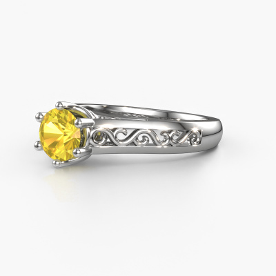 Nous avons donné le nom Shan à la bague de fiançailles mentionnée ci-dessous. Ce type de bague de fiançailles est appelée une bague de fiançailles solitaire car elle ne contient qu’une seule pierre précieuse. La bague de fiançailles est forgée en or et comporte un saphir jaune ronds d’une de 6 mm. L’avantage de notre outil de configuration est que vous pouvez choisir les éléments de votre propres bijou pour créer vous-même votre propre bijou. Cette bague de fiançailles solitaire est faite à partir d’une combinaison de métal précieux d’or et d’platine, mais vous pouvez également choisir un or d’une autre couleur. Chaque bijou est fabriquée par une équipe d'orfèvres et de designers motivés. Cela permettra à cette pièce unique d'attirer tous les regards. La bague de fiançailles solitaire est une large bague de fiançailles. C'est précisément grâce au fait que le sertissage de chaton soit ouvert que l'incidence de la lumière crée un effet magnifique sur la pierre précieuse. Puisque la pierre précieuse choisie est sertie en élévation sur la bague de fiançailles, cette bague de fiançailles Celtiques attirera tous les regards une loyautés finie. Nous fabriquerons tous les détails de cette bague de fiançailles solitaire avec le plus grand soin, afin que vous puissiez bientôt couronner votre demande en mariage avec une bague unique, en particulier pour l'amour de votre vie ! Qu'y a-t-il dorénavant de plus beau qu'une bague de fiançailles Celtiques conçue par vous-même et fabriquée à la main par nous. Vous pouvez personnaliser chaque modèle avec les différents métaux précieux et pierres précieuses. De cette façon, vous pourrez créer une bague de fiançailles unique. Cette bague peut être mise en place de plusieurs façons. Bien sûr, vous pouvez toujours nous contacter et nous serons heureux de vous aider à composer votre bague de fiançailles Celtiques Shan. Vous aimez le design, mais vous souhaitez tout de même quelque chose qui vous convienne plus, ou bien vous souhaitez une pierre précieuse dans les bijoux que vous ne pouvez pas choisir sur notre site, contactez-nous et nous vous aiderons.Avez-vous déjà des bague de fiançailles spécifiques en tête ? Une bague de fiançailles que vous avez vu quelque part. N'hésitez pas à nous faire part de vos souhaits et nous transformerons votre design en des bague de fiançailles uniques. Vous êtes en mesure de suivre l'évolution de la conception de vos bague de fiançailles car nous utilisons des dessins en 3D. Cela vous donnera un aperçu réaliste de votre design. Nous vous enverrons volontiers une offre sans engagement basée sur un rapport qualité / prix juste. Elle va vous étonner.Pour vous faciliter la tâche, vous pouvez facilement nous retourner tout bijou commandé dans les 30 jours suivant la livraison.