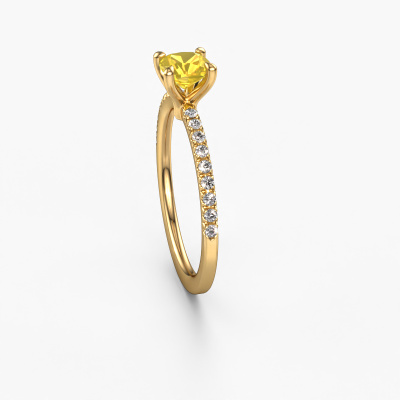 La bague de fiançailles mentionnée ci-dessus a été nommée Crystal CUS 2. Ce type de bague de fiançailles est appelé une bague de fiançailles solitaire pavé car elle ne comporte qu’une seule pierre centrale et les tiges de la bague de fiançailles sont également pleins. La bague de fiançailles est faite dans une combinaison d'or 14 Carat et d’or jaune et a un saphir jaune coussin d’une de 5 mm, et des diamants sont sertis sur les épaules de l’anneau. Chaque bijou est fabriquée spécialement pour vous par nos maîtres orfèvres dans notre propre atelier. Cette bague de fiançailles solitaire pavé forgée en or jaune classiques a un beau saphirs jaunes coussin comme pierre centrale, avec plus de saphirs jaunes sertis dans la bague pour accentuer encore plus la présence de la pierre centrale. Le sertissage à griffes autour du saphir jaune étant ouvert, le saphir jaune capte la lumière de tous les côtés et brille de manière optimale. Ci-dessus, vous pouvez voir comment notre orfèvre travaille la bague de fiançailles avec une extrême précision dans les moindres détails, de telle sorte que le saphir jaune élevé puisse attirer tous les regards. Quelle belle bague de fiançailles à offrir lors de votre demande en mariage à l'amour de votre vie, à votre centre rayonnant ! Nos orfèvres ne fabriqueront votre bague de fiançailles qu'une fois que vous l'aurez commandée. Nous ne faisons pas de stock. L'avantage de cela est que nous n'avons pas à inclure les frais de stockage dans nos prix, et nous pouvons donc vous offrir des bijoux à un prix très bas.Notre équipe ajoute quotidiennement de nouveaux modèles à notre collection en ligne. Nos designers et orfèvres travaillent ensemble pour créer le meilleur design. Nous nous efforçons d'offrir une collection diversifiée de bijoux. Peut-être avez-vous déjà en tête un bijou en particulier ? Un bijou que vous avez trouvé quelque part. Veuillez nous contacter pour une consultation gratuite. Nous vous ferons une offre, basée sur un rapport qualité / prix juste, qui vous déconcertera.Pour vous faciliter la tâche, vous pouvez facilement nous retourner tout bijou commandé dans les 30 jours suivant la livraison.