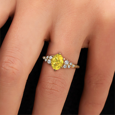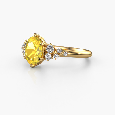 Nous avons donné le nom Royce OVL à la bague de fiançailles mentionnée ci-dessous. Ce type de bague de fiançailles est appelé une bague de fiançailles solitaire pavé car elle ne comporte qu’une seule pierre centrale et les tiges de la bague de fiançailles ont également une finition pleine. Cette bague de fiançailles est forgée en or 14 Carat et comporte un saphir jaune ovale de 8x6 mm. Des diamants synthétiques sont sertis dans les épaules latérales de l’anneau. Chaque bijou est faite avec passion et amour par l'un de nos maîtres orfèvres.. Cette bague de fiançailles solitaire pavé forgée en or jaune fantaisie a un beau saphir jaune ovale en guise de pierre centrale, avec plus de diamants synthétiques dans l’anneau pour accentuer encore plus l’effet de la pierre centrale. Le sertissage à griffes autour du saphir jaune étant ouvert, le saphir jaune capte la lumière de tous les côtés et brille de manière optimale. Ci-dessus, vous pouvez voir comment notre orfèvre a travaillé la bague de fiançailles dans les moindres détails. de telle sorte que le saphir jaune élevé puisse véritablement attirer tous les regards. Quelle belle bague de fiançailles à offre lors de votre demande en mariage à l'amour de votre vie, à votre centre rayonnant ! Saviez-vous que nous offrons la garantie du meilleur prix pour votre bague de fiançailles? Cela est possible car tous nos bijoux sont fabriqués à la main dans notre propre atelier. Nous n'avons pas de frais de stocks qui sont coûteux, et nous fabriquons votre bague uniquement une fois que vous l'avez commandée. Grâce au fait que nous ayons toute la production du bijou en main, nous pouvons vous informer sur toutes les caractéristiques de cette bague de fiançailles. C’est précisément parce que l’achat d’une bague en ligne est une expérience excitante que nous comprenons qu’il est plus confortable pour vous de connaître toutes les caractéristiques de votre bague.Avez-vous déjà des bague de fiançailles spécifiques en tête ? Une bague de fiançailles que vous avez vu quelque part. N'hésitez pas à nous faire part de vos souhaits et nous transformerons votre design en des bague de fiançailles uniques. Vous êtes en mesure de suivre l'évolution de la conception de vos bague de fiançailles car nous utilisons des dessins en 3D. Cela vous donnera un aperçu réaliste de votre design. Nous vous enverrons volontiers une offre sans engagement basée sur un rapport qualité / prix juste. Elle va vous étonner.Pour vous faciliter la tâche, vous pouvez facilement nous retourner tout bijou commandé dans les 30 jours suivant la livraison.