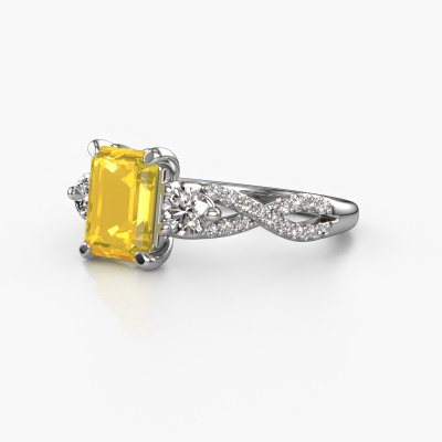 Le nom de cette bague de fiançailles est Marilou EME. Elle est forgée en or et est sertie d'un saphir jaune de 8x6 mm. Comment décririez-vous le style de l'amour de votre vie ? Est-ce qu'elle aime quelque chose qui est juste un peu plus différent que d'habitude ? Cette bague de fiançailles forgée en platine avec bandes séparées est une superbe bague que vous pouvez personnaliser à votre guise. Un saphir jaune est utilisé dans cette bague de fiançailles luxes. Ces saphirs jaunes ont été sélectionnés avec soin, car nous pensons que sur votre bague de fiançailles, seule les plus belle pierre précieuses peuvent y briller, n'est-ce pas ? Ce bijou est fabriquées avec passion et amour par l'un de nos maîtres orfèvres.Nos orfèvres ne fabriqueront votre bague de fiançailles qu'une fois que vous l'aurez commandée. Nous ne faisons pas de stock. L'avantage de cela est que nous n'avons pas à inclure les frais de stockage dans nos prix, et nous pouvons donc vous offrir des bijoux à un prix très bas. Avez-vous déjà des bague de fiançailles spécifiques en tête ? Une bague de fiançailles que vous avez vu quelque part. N'hésitez pas à nous faire part de vos souhaits et nous transformerons votre design en des bague de fiançailles uniques. Vous êtes en mesure de suivre l'évolution de la conception de vos bague de fiançailles car nous utilisons des dessins en 3D. Cela vous donnera un aperçu réaliste de votre design. Nous vous enverrons volontiers une offre sans engagement basée sur un rapport qualité / prix juste. Elle va vous étonner.Pour vous faciliter la tâche, vous pouvez facilement nous retourner tout bijou commandé dans les 30 jours suivant la livraison.
