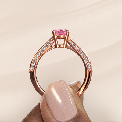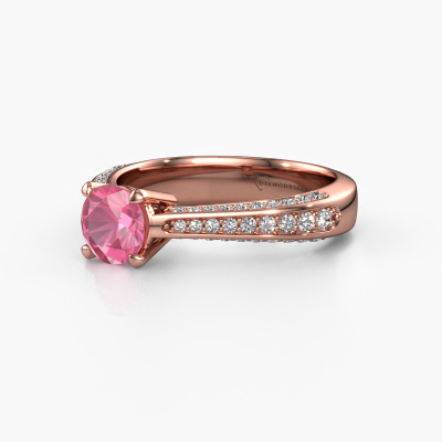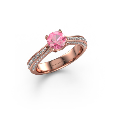 Nous avons donné le nom Ruby rnd à la bague de fiançailles mentionnée ci-dessous. Ce type de bague de fiançailles est appelé une bague de fiançailles solitaire pavé car elle ne comporte qu’une seule pierre centrale et les tiges de la bague de fiançailles ont également une finition pleine. Cette bague de fiançailles est forgée en or 14 Carat et comporte un saphir rose ronds de 5.7 mm. Des diamants sont sertis dans les épaules latérales de l’anneau. Chaque bijou est faite spécialement pour vous, avec une attention particulière portée aux détails et au design.. Cette bague de fiançailles solitaire pavé forgée en or rose exclusives a un beau saphir rose ronds en guise de pierre centrale, avec plus de diamants dans l’anneau pour accentuer encore plus l’effet de la pierre centrale. Le sertissage à griffes autour du saphir rose étant ouvert, le saphir rose capte la lumière de tous les côtés et brille de manière optimale. Ci-dessus, vous pouvez voir comment notre orfèvre a travaillé la bague de fiançailles dans les moindres détails. de telle sorte que le saphir rose élevé puisse véritablement attirer tous les regards. Quelle belle bague de fiançailles à offre lors de votre demande en mariage à l'amour de votre vie, à votre centre rayonnant ! Puisque nous concevons et livrons nos propres bijoux, nous sommes en mesure de vous proposer une bague de fiançailles à un prix que vous ne pourrez pas trouver ailleurs. Une alliance est fabriquée sur commande, ce qui permet d'éviter les excédents de matériel et nous permet de vous proposer une superbe offre de prix. Nous comprenons qu'acheter votre bague de fiançailles en ligne soit un risque, mais nous vous assistons volontiers dans le processus de conception, en tenant compte de votre budget.Avez-vous déjà des bague de fiançailles spécifiques en tête ? Une bague de fiançailles que vous avez vu quelque part. N'hésitez pas à nous faire part de vos souhaits et nous transformerons votre design en des bague de fiançailles uniques. Vous êtes en mesure de suivre l'évolution de la conception de vos bague de fiançailles car nous utilisons des dessins en 3D. Cela vous donnera un aperçu réaliste de votre design. Nous vous enverrons volontiers une offre sans engagement basée sur un rapport qualité / prix juste. Elle va vous étonner.Pour vous faciliter la tâche, vous pouvez facilement nous retourner tout bijou commandé dans les 30 jours suivant la livraison.