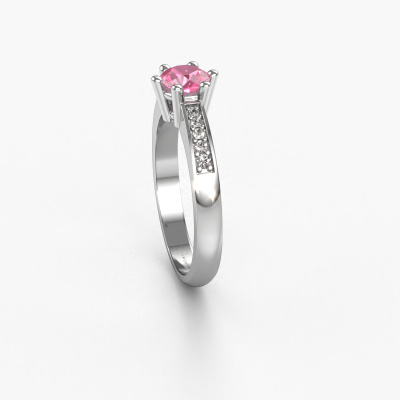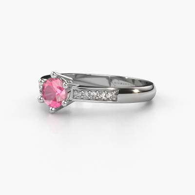 Nous avons donné le nom Luna 2 à la bague de fiançailles mentionnée ci-dessous. Ce type de bague de fiançailles est appelé une bague de fiançailles solitaire pavé car elle ne comporte qu’une seule pierre centrale et les tiges de la bague de fiançailles ont également une finition pleine. Cette bague de fiançailles est forgée en or et comporte un saphir rose ronds de 5 mm. Des diamants sont sertis dans les épaules latérales de l’anneau. Chaque bijou est unique car vous pouvez entièrement l'assembler à votre guise.. Cette bague de fiançailles solitaire pavé forgée en platine classiques a un beau saphir rose ronds en guise de pierre centrale, avec plus de diamants dans l’anneau pour accentuer encore plus l’effet de la pierre centrale. Le sertissage à griffes autour du saphir rose étant ouvert, le saphir rose capte la lumière de tous les côtés et brille de manière optimale. Ci-dessus, vous pouvez voir comment notre orfèvre a travaillé la bague de fiançailles dans les moindres détails. de telle sorte que le saphir rose élevé puisse véritablement attirer tous les regards. Quelle belle bague de fiançailles à offre lors de votre demande en mariage à l'amour de votre vie, à votre centre rayonnant ! Puisque nous concevons et livrons nos propres bijoux, nous sommes en mesure de vous proposer une bague de fiançailles à un prix que vous ne pourrez pas trouver ailleurs. Une alliance est fabriquée sur commande, ce qui permet d'éviter les excédents de matériel et nous permet de vous proposer une superbe offre de prix. Nous comprenons qu'acheter votre bague de fiançailles en ligne soit un risque, mais nous vous assistons volontiers dans le processus de conception, en tenant compte de votre budget.Notre équipe ajoute quotidiennement de nouveaux modèles à notre collection en ligne. Nos designers et orfèvres travaillent ensemble pour créer le meilleur design. Nous nous efforçons d'offrir une collection diversifiée de bijoux. Peut-être avez-vous déjà en tête un bijou en particulier ? Un bijou que vous avez trouvé quelque part. Veuillez nous contacter pour une consultation gratuite. Nous vous ferons une offre, basée sur un rapport qualité / prix juste, qui vous déconcertera.Pour vous faciliter la tâche, vous pouvez facilement nous retourner tout bijou commandé dans les 30 jours suivant la livraison.