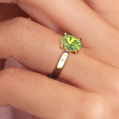 Nous avons donné le nom Mignon ovl 1 à la bague de fiançailles mentionnée ci-dessous. Ce type de bague de fiançailles est appelée une bague de fiançailles solitaire car elle ne contient qu’une seule pierre précieuse. La bague de fiançailles est forgée en or 14 Carat et comporte un péridot ovale d’une la de 8x6 mm. Cette bague de fiançailles solitaire forgée en or blanc traditionnelles sertie d’un beau péridot ovale est une magnifique bague de fiançailles. Grâce au fait que le sertissage de chaton soit ouvert, l’effet de lumière sur la pierre précieuse est optimal. Nous plaçons également la pierre précieuse en élévation sur la bague, ce qui la rendra encore plus frappante. Par exemple, le diamants est une belle pierre précieuse à offrir à l'amour de votre vie, car il symbolise l'amour éternel et la pureté. Et ce symbole rayonne au milieu de cette bague solitaire. Ainsi, chaque pierre précieuse a une belle signification symbolique. Vous pouvez concevoir vous-même cette bague de fiançailles solitaire dans différentes combinaisons de métaux précieux. Celle-ci a une combinaison d'or 14 Carat avec or de l’rouge. Chaque bijou est fabriquée par une équipe d'orfèvres et de designers motivés. Cela permettra à cette pièce unique d'attirer tous les regards.En combinant les dernières techniques modernes, associées à une fabrication ancienne, nous sommes en mesure de fabriquer nos bagues de fiançailles dans notre propre studio. Chaque bijou est fabriqué sur commande. Ceci est avantageux car nous sommes en mesure de vous proposer un prix que vous ne trouverez nulle part ailleurs.Notre équipe de designers talentueux et passionnés ajoute chaque jour de nouveaux modèles bague de fiançailles à notre collection en ligne. Notre objectif est de pouvoir vous offrir une grande variété de bijoux. N'hésitez pas à demander un devis si vous avez des souhaits spécifiques pour votre bague de fiançailles. Nous garantissons de vous faire une offre que vous ne pourrez pas refuser.Pour vous faciliter la tâche, vous pouvez facilement nous retourner tout bijou commandé dans les 30 jours suivant la livraison.