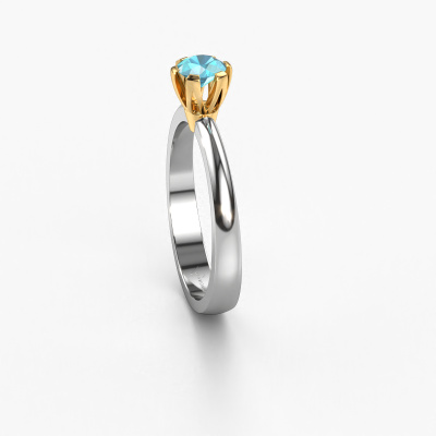 Nous avons donné le nom Julia à la bague de fiançailles mentionnée ci-dessous. Ce type de bague de fiançailles est appelée une bague de fiançailles solitaire car elle ne contient qu’une seule pierre précieuse. La bague de fiançailles est forgée en or 14 Carat et comporte un topaze bleue ronds d’une la de 4 mm. Cette bague de fiançailles solitaire forgée en or blanc tendances sertie d’un beau topaze bleue ronds est une magnifique bague de fiançailles. Grâce au fait que le sertissage de chaton soit ouvert, l’effet de lumière sur la pierre précieuse est optimal. Nous plaçons également la pierre précieuse en élévation sur la bague, ce qui la rendra encore plus frappante. Par exemple, le diamants est une belle pierre précieuse à offrir à l'amour de votre vie, car il symbolise l'amour éternel et la pureté. Et ce symbole rayonne au milieu de cette bague solitaire. Ainsi, chaque pierre précieuse a une belle signification symbolique. Vous pouvez concevoir vous-même cette bague de fiançailles solitaire dans différentes combinaisons de métaux précieux. Celle-ci a une combinaison d'or 14 Carat avec or de l’rouge. Chaque bijou est faite pour briller sur votre doigt, chaque bijou est fabriqué à la main par nos orfèvres.Vous avez peut-être remarqué que nos prix sont en moyenne inférieurs de 30% à ceux d'un autre bijoutier. Et ce alors que la qualité de nos bijoux est même plus élevée dans la plupart des cas ! En effet, nos orfèvres fabriquent votre bague de fiançailles directement dans notre propre atelier. Cela signifie que nous n'avons pas à inclure des frais de stocks coûteux et que nous pouvons travailler n'importe quel détail directement sur votre bague de fiançailles.Notre équipe ajoute quotidiennement de nouveaux modèles à notre collection en ligne. Nos designers et orfèvres travaillent ensemble pour créer le meilleur design. Nous nous efforçons d'offrir une collection diversifiée de bijoux. Peut-être avez-vous déjà en tête un bijou en particulier ? Un bijou que vous avez trouvé quelque part. Veuillez nous contacter pour une consultation gratuite. Nous vous ferons une offre, basée sur un rapport qualité / prix juste, qui vous déconcertera.Pour vous faciliter la tâche, vous pouvez facilement nous retourner tout bijou commandé dans les 30 jours suivant la livraison.