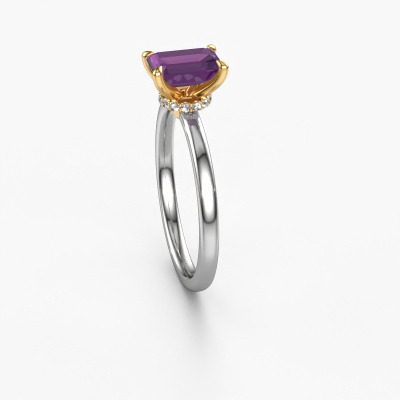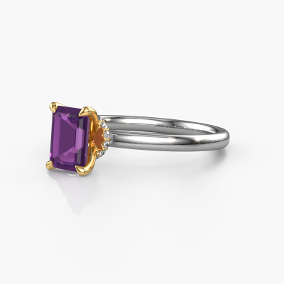 Nous avons donné le nom Crystal EME 3 à la bague de fiançailles mentionnée ci-dessous. Ce type de bague de fiançailles est appelée une bague de fiançailles solitaire car elle ne contient qu’une seule pierre précieuse. La bague de fiançailles est forgée en or 14 Carat et comporte un améthyste taille émeraude d’une la de 7x5 mm. Cette bague de fiançailles solitaire forgée en or blanc classiques sertie d’un beau améthyste taille émeraude est une magnifique bague de fiançailles. Grâce au fait que le sertissage de chaton soit ouvert, l’effet de lumière sur la pierre précieuse est optimal. Nous plaçons également la pierre précieuse en élévation sur la bague, ce qui la rendra encore plus frappante. Par exemple, le diamants est une belle pierre précieuse à offrir à l'amour de votre vie, car il symbolise l'amour éternel et la pureté. Et ce symbole rayonne au milieu de cette bague solitaire. Ainsi, chaque pierre précieuse a une belle signification symbolique. Vous pouvez concevoir vous-même cette bague de fiançailles solitaire dans différentes combinaisons de métaux précieux. Celle-ci a une combinaison d'or 14 Carat avec or de l’rouge. Chaque bijou est fabriquée par une équipe d'orfèvres et de designers motivés. Cela permettra à cette pièce unique d'attirer tous les regards.Qu'y a-t-il dorénavant de plus beau qu'une bague de fiançailles classiques conçue par vous-même et fabriquée à la main par nous. Vous pouvez personnaliser chaque modèle avec les différents métaux précieux et pierres précieuses. De cette façon, vous pourrez créer une bague de fiançailles unique. Cette bague peut être mise en place de plusieurs façons. Bien sûr, vous pouvez toujours nous contacter et nous serons heureux de vous aider à composer votre bague de fiançailles classiques Crystal EME 3. Vous aimez le design, mais vous souhaitez tout de même quelque chose qui vous convienne plus, ou bien vous souhaitez une pierre précieuse dans les bijoux que vous ne pouvez pas choisir sur notre site, contactez-nous et nous vous aiderons.Avez-vous déjà des bague de fiançailles spécifiques en tête ? Une bague de fiançailles que vous avez vu quelque part. N'hésitez pas à nous faire part de vos souhaits et nous transformerons votre design en des bague de fiançailles uniques. Vous êtes en mesure de suivre l'évolution de la conception de vos bague de fiançailles car nous utilisons des dessins en 3D. Cela vous donnera un aperçu réaliste de votre design. Nous vous enverrons volontiers une offre sans engagement basée sur un rapport qualité / prix juste. Elle va vous étonner.Pour vous faciliter la tâche, vous pouvez facilement nous retourner tout bijou commandé dans les 30 jours suivant la livraison.