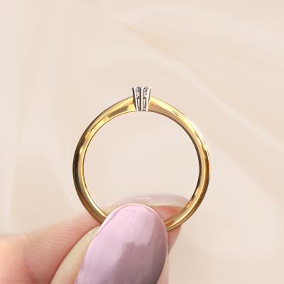 Nous avons donné le nom Fay à la bague de fiançailles mentionnée ci-dessous. Ce type de bague de fiançailles est appelée une bague de fiançailles solitaire car elle ne contient qu’une seule pierre précieuse. La bague de fiançailles est forgée en or 14 Carat et comporte un diamant ronds d’une la de 0.03 crt. Cette bague de fiançailles solitaire forgée en or jaune traditionnelles sertie d’un beau diamant ronds est une magnifique bague de fiançailles. Grâce au fait que le sertissage de chaton soit ouvert, l’effet de lumière sur la pierre précieuse est optimal. Nous plaçons également la pierre précieuse en élévation sur la bague, ce qui la rendra encore plus frappante. Par exemple, le diamants est une belle pierre précieuse à offrir à l'amour de votre vie, car il symbolise l'amour éternel et la pureté. Et ce symbole rayonne au milieu de cette bague solitaire. Ainsi, chaque pierre précieuse a une belle signification symbolique. Vous pouvez concevoir vous-même cette bague de fiançailles solitaire dans différentes combinaisons de métaux précieux. Celle-ci a une combinaison d'or 14 Carat avec or de l’rouge. Chaque bijou est fabriquées spécialement pour vous par nos maîtres orfèvres dans notre propre atelier.En combinant les dernières techniques modernes, associées à une fabrication ancienne, nous sommes en mesure de fabriquer nos bagues de fiançailles dans notre propre studio. Chaque bijou est fabriqué sur commande. Ceci est avantageux car nous sommes en mesure de vous proposer un prix que vous ne trouverez nulle part ailleurs.Avez-vous déjà des bague de fiançailles spécifiques en tête ? Une bague de fiançailles que vous avez vu quelque part. N'hésitez pas à nous faire part de vos souhaits et nous transformerons votre design en des bague de fiançailles uniques. Vous êtes en mesure de suivre l'évolution de la conception de vos bague de fiançailles car nous utilisons des dessins en 3D. Cela vous donnera un aperçu réaliste de votre design. Nous vous enverrons volontiers une offre sans engagement basée sur un rapport qualité / prix juste. Elle va vous étonner.Pour vous faciliter la tâche, vous pouvez facilement nous retourner tout bijou commandé dans les 30 jours suivant la livraison.