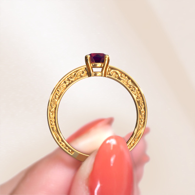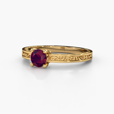 Nous avons donné le nom Claudette 1 à cette bague de fiançailles. Cette bague de fiançailles élégants forgée en or 14 Carat est sertie d’un rhodolite de 5 mm. Votre petite amie a-t-elle un faible pour le vintage ? Vous pouvez donc être sûr que cette bague de fiançailles forgée en or jaune conviendra à son style ! Un nouveau modèle basé sur des motifs Celtiques. Un peu de rêve, un beau design, surtout si vous l’ajustez encore plus à votre goût. De magnifiques rhodolites ont été sertis sur cette bague de fiançailles solitaire Celtiques. Comme vous pouvez le constater, vous pouvez choisir vous-même une pierre précieuse qui convient à votre petite amie. Chaque pierre précieuse est soigneusement sélectionnée par nos commerçants du monde entier. Notre orfèvre ne veut travailler que les plus belles pierres précieuses sur votre bijou. Après tout, c'est la couronne de son travail ! Chaque bijou est unique car vous pouvez entièrement l'assembler à votre guise.Nos orfèvres ne fabriqueront votre bague de fiançailles qu'une fois que vous l'aurez commandée. Nous ne faisons pas de stock. L'avantage de cela est que nous n'avons pas à inclure les frais de stockage dans nos prix, et nous pouvons donc vous offrir des bijoux à un prix très bas.Notre équipe ajoute quotidiennement de nouveaux modèles à notre collection en ligne. Nos designers et orfèvres travaillent ensemble pour créer le meilleur design. Nous nous efforçons d'offrir une collection diversifiée de bijoux. Peut-être avez-vous déjà en tête un bijou en particulier ? Un bijou que vous avez trouvé quelque part. Veuillez nous contacter pour une consultation gratuite. Nous vous ferons une offre, basée sur un rapport qualité / prix juste, qui vous déconcertera.Pour vous faciliter la tâche, vous pouvez facilement nous retourner tout bijou commandé dans les 30 jours suivant la livraison.