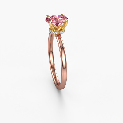 Nous avons donné le nom Crystal OVL 3 à la bague de fiançailles mentionnée ci-dessous. Ce type de bague de fiançailles est appelée une bague de fiançailles solitaire car elle ne contient qu’une seule pierre précieuse. La bague de fiançailles est forgée en or 14 Carat et comporte un diamant synthétique roze ovale d’une la de 7,5x5,5 mm. Cette bague de fiançailles solitaire forgée en or rose uniques sertie d’un beau diamant synthétique roze ovale est une magnifique bague de fiançailles. Grâce au fait que le sertissage de chaton soit ouvert, l’effet de lumière sur la pierre précieuse est optimal. Nous plaçons également la pierre précieuse en élévation sur la bague, ce qui la rendra encore plus frappante. Par exemple, le diamants est une belle pierre précieuse à offrir à l'amour de votre vie, car il symbolise l'amour éternel et la pureté. Et ce symbole rayonne au milieu de cette bague solitaire. Ainsi, chaque pierre précieuse a une belle signification symbolique. Vous pouvez concevoir vous-même cette bague de fiançailles solitaire dans différentes combinaisons de métaux précieux. Celle-ci a une combinaison d'or 14 Carat avec or de l’rouge. Chaque bijou est fabriquée spécialement pour vous par nos maîtres orfèvres dans notre propre atelier.Saviez-vous que nous offrons la garantie du meilleur prix pour votre bague de fiançailles? Cela est possible car tous nos bijoux sont fabriqués à la main dans notre propre atelier. Nous n'avons pas de frais de stocks qui sont coûteux, et nous fabriquons votre bague uniquement une fois que vous l'avez commandée. Grâce au fait que nous ayons toute la production du bijou en main, nous pouvons vous informer sur toutes les caractéristiques de cette bague de fiançailles. C’est précisément parce que l’achat d’une bague en ligne est une expérience excitante que nous comprenons qu’il est plus confortable pour vous de connaître toutes les caractéristiques de votre bague.Notre équipe de designers talentueux et passionnés ajoute chaque jour de nouveaux modèles bague de fiançailles à notre collection en ligne. Notre objectif est de pouvoir vous offrir une grande variété de bijoux. N'hésitez pas à demander un devis si vous avez des souhaits spécifiques pour votre bague de fiançailles. Nous garantissons de vous faire une offre que vous ne pourrez pas refuser.Pour vous faciliter la tâche, vous pouvez facilement nous retourner tout bijou commandé dans les 30 jours suivant la livraison.