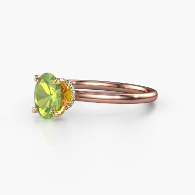 Nous avons donné le nom Crystal OVL 3 à la bague de fiançailles mentionnée ci-dessous. Ce type de bague de fiançailles est appelée une bague de fiançailles solitaire car elle ne contient qu’une seule pierre précieuse. La bague de fiançailles est forgée en or 14 Carat et comporte un péridot ovale d’une la de 7,5x5,5 mm. Cette bague de fiançailles solitaire forgée en or rose uniques sertie d’un beau péridot ovale est une magnifique bague de fiançailles. Grâce au fait que le sertissage de chaton soit ouvert, l’effet de lumière sur la pierre précieuse est optimal. Nous plaçons également la pierre précieuse en élévation sur la bague, ce qui la rendra encore plus frappante. Par exemple, le diamants est une belle pierre précieuse à offrir à l'amour de votre vie, car il symbolise l'amour éternel et la pureté. Et ce symbole rayonne au milieu de cette bague solitaire. Ainsi, chaque pierre précieuse a une belle signification symbolique. Vous pouvez concevoir vous-même cette bague de fiançailles solitaire dans différentes combinaisons de métaux précieux. Celle-ci a une combinaison d'or 14 Carat avec or de l’rouge. Chaque bijou est fabriquée spécialement pour vous par nos maîtres orfèvres dans notre propre atelier.Saviez-vous que nous offrons la garantie du meilleur prix pour votre bague de fiançailles? Cela est possible car tous nos bijoux sont fabriqués à la main dans notre propre atelier. Nous n'avons pas de frais de stocks qui sont coûteux, et nous fabriquons votre bague uniquement une fois que vous l'avez commandée. Grâce au fait que nous ayons toute la production du bijou en main, nous pouvons vous informer sur toutes les caractéristiques de cette bague de fiançailles. C’est précisément parce que l’achat d’une bague en ligne est une expérience excitante que nous comprenons qu’il est plus confortable pour vous de connaître toutes les caractéristiques de votre bague.Notre équipe de designers talentueux et passionnés ajoute chaque jour de nouveaux modèles bague de fiançailles à notre collection en ligne. Notre objectif est de pouvoir vous offrir une grande variété de bijoux. N'hésitez pas à demander un devis si vous avez des souhaits spécifiques pour votre bague de fiançailles. Nous garantissons de vous faire une offre que vous ne pourrez pas refuser.Pour vous faciliter la tâche, vous pouvez facilement nous retourner tout bijou commandé dans les 30 jours suivant la livraison.