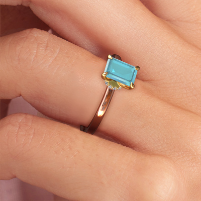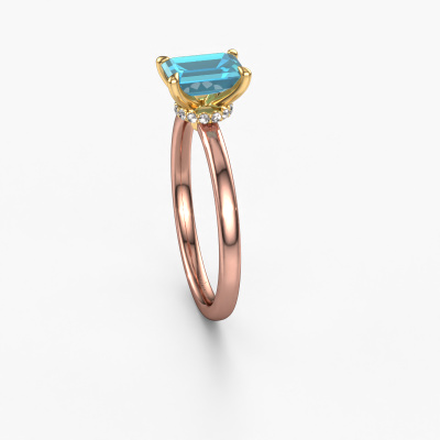 Nous avons donné le nom Crystal EME 3 à la bague de fiançailles mentionnée ci-dessous. Ce type de bague de fiançailles est appelée une bague de fiançailles solitaire car elle ne contient qu’une seule pierre précieuse. La bague de fiançailles est forgée en or 14 Carat et comporte un topaze bleue taille émeraude d’une la de 7x5 mm. Cette bague de fiançailles solitaire forgée en or rose classiques sertie d’un beau topaze bleue taille émeraude est une magnifique bague de fiançailles. Grâce au fait que le sertissage de chaton soit ouvert, l’effet de lumière sur la pierre précieuse est optimal. Nous plaçons également la pierre précieuse en élévation sur la bague, ce qui la rendra encore plus frappante. Par exemple, le diamants est une belle pierre précieuse à offrir à l'amour de votre vie, car il symbolise l'amour éternel et la pureté. Et ce symbole rayonne au milieu de cette bague solitaire. Ainsi, chaque pierre précieuse a une belle signification symbolique. Vous pouvez concevoir vous-même cette bague de fiançailles solitaire dans différentes combinaisons de métaux précieux. Celle-ci a une combinaison d'or 14 Carat avec or de l’rouge. Chaque bijou est fabriquée par une équipe d'orfèvres et de designers motivés. Cela permettra à cette pièce unique d'attirer tous les regards.Qu'y a-t-il dorénavant de plus beau qu'une bague de fiançailles classiques conçue par vous-même et fabriquée à la main par nous. Vous pouvez personnaliser chaque modèle avec les différents métaux précieux et pierres précieuses. De cette façon, vous pourrez créer une bague de fiançailles unique. Cette bague peut être mise en place de plusieurs façons. Bien sûr, vous pouvez toujours nous contacter et nous serons heureux de vous aider à composer votre bague de fiançailles classiques Crystal EME 3. Vous aimez le design, mais vous souhaitez tout de même quelque chose qui vous convienne plus, ou bien vous souhaitez une pierre précieuse dans les bijoux que vous ne pouvez pas choisir sur notre site, contactez-nous et nous vous aiderons.Avez-vous déjà des bague de fiançailles spécifiques en tête ? Une bague de fiançailles que vous avez vu quelque part. N'hésitez pas à nous faire part de vos souhaits et nous transformerons votre design en des bague de fiançailles uniques. Vous êtes en mesure de suivre l'évolution de la conception de vos bague de fiançailles car nous utilisons des dessins en 3D. Cela vous donnera un aperçu réaliste de votre design. Nous vous enverrons volontiers une offre sans engagement basée sur un rapport qualité / prix juste. Elle va vous étonner.Pour vous faciliter la tâche, vous pouvez facilement nous retourner tout bijou commandé dans les 30 jours suivant la livraison.