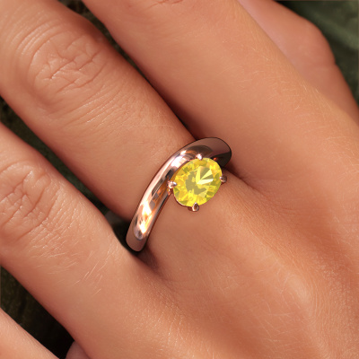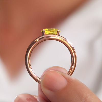 Nous avons donné le nom Floor OVL à cette bague de fiançailles. Elle est fabriquée forgée en or 14 Carat et sertie d’un saphir jaune. Aimez-vous vous associer aux tendances actuelles ? Et voulez-vous que cela se reflète dans votre choix de