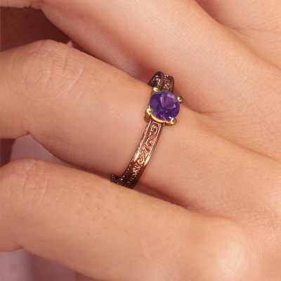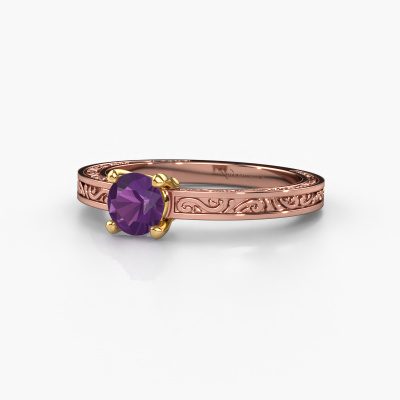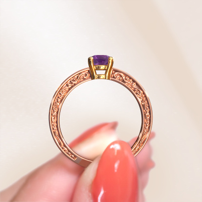 Nous avons donné le nom Claudette 1 à cette bague de fiançailles. Cette bague de fiançailles élégants forgée en or 14 Carat est sertie d’un améthyste de 5 mm. Votre petite amie a-t-elle un faible pour le vintage ? Vous pouvez donc être sûr que cette bague de fiançailles forgée en or rose conviendra à son style ! Un nouveau modèle basé sur des motifs Celtiques. Un peu de rêve, un beau design, surtout si vous l’ajustez encore plus à votre goût. De magnifiques améthystes ont été sertis sur cette bague de fiançailles solitaire Celtiques. Comme vous pouvez le constater, vous pouvez choisir vous-même une pierre précieuse qui convient à votre petite amie. Chaque pierre précieuse est soigneusement sélectionnée par nos commerçants du monde entier. Notre orfèvre ne veut travailler que les plus belles pierres précieuses sur votre bijou. Après tout, c'est la couronne de son travail ! Chaque bijou est unique car vous pouvez entièrement l'assembler à votre guise.Nos orfèvres ne fabriqueront votre bague de fiançailles qu'une fois que vous l'aurez commandée. Nous ne faisons pas de stock. L'avantage de cela est que nous n'avons pas à inclure les frais de stockage dans nos prix, et nous pouvons donc vous offrir des bijoux à un prix très bas.Notre équipe ajoute quotidiennement de nouveaux modèles à notre collection en ligne. Nos designers et orfèvres travaillent ensemble pour créer le meilleur design. Nous nous efforçons d'offrir une collection diversifiée de bijoux. Peut-être avez-vous déjà en tête un bijou en particulier ? Un bijou que vous avez trouvé quelque part. Veuillez nous contacter pour une consultation gratuite. Nous vous ferons une offre, basée sur un rapport qualité / prix juste, qui vous déconcertera.Pour vous faciliter la tâche, vous pouvez facilement nous retourner tout bijou commandé dans les 30 jours suivant la livraison.