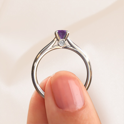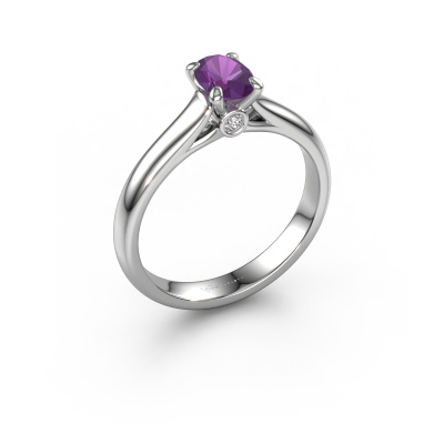 Nous avons donné le nom Valorie ovl 1 à la bague de fiançailles mentionnée ci-dessous. Ce type de bague de fiançailles est appelée une bague de fiançailles solitaire car elle ne contient qu’une seule pierre précieuse. La bague de fiançailles est forgée en or et comporte un améthyste ovale d’une la de 6.5x4.5 mm. Cette bague de fiançailles solitaire forgée en platine modernes sertie d’un beau améthyste ovale est une magnifique bague de fiançailles. Grâce au fait que le sertissage de chaton soit ouvert, l’effet de lumière sur la pierre précieuse est optimal. Nous plaçons également la pierre précieuse en élévation sur la bague, ce qui la rendra encore plus frappante. Par exemple, le diamants est une belle pierre précieuse à offrir à l'amour de votre vie, car il symbolise l'amour éternel et la pureté. Et ce symbole rayonne au milieu de cette bague solitaire. Ainsi, chaque pierre précieuse a une belle signification symbolique. Vous pouvez concevoir vous-même cette bague de fiançailles solitaire dans différentes combinaisons de métaux précieux. Celle-ci a une combinaison d'or avec or de l’rouge. Chaque bijou est faite spécialement pour vous, avec une attention particulière portée aux détails et au design.Qu'y a-t-il dorénavant de plus beau qu'une bague de fiançailles modernes conçue par vous-même et fabriquée à la main par nous. Vous pouvez personnaliser chaque modèle avec les différents métaux précieux et pierres précieuses. De cette façon, vous pourrez créer une bague de fiançailles unique. Cette bague peut être mise en place de plusieurs façons. Bien sûr, vous pouvez toujours nous contacter et nous serons heureux de vous aider à composer votre bague de fiançailles modernes Valorie ovl 1. Vous aimez le design, mais vous souhaitez tout de même quelque chose qui vous convienne plus, ou bien vous souhaitez une pierre précieuse dans les bijoux que vous ne pouvez pas choisir sur notre site, contactez-nous et nous vous aiderons.Avez-vous déjà des bague de fiançailles spécifiques en tête ? Une bague de fiançailles que vous avez vu quelque part. N'hésitez pas à nous faire part de vos souhaits et nous transformerons votre design en des bague de fiançailles uniques. Vous êtes en mesure de suivre l'évolution de la conception de vos bague de fiançailles car nous utilisons des dessins en 3D. Cela vous donnera un aperçu réaliste de votre design. Nous vous enverrons volontiers une offre sans engagement basée sur un rapport qualité / prix juste. Elle va vous étonner.Pour vous faciliter la tâche, vous pouvez facilement nous retourner tout bijou commandé dans les 30 jours suivant la livraison.