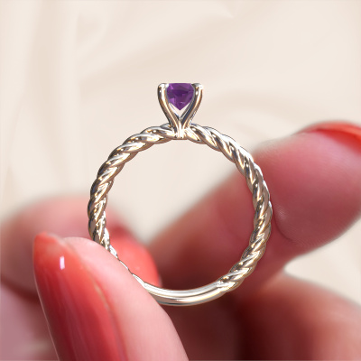 Nous avons donné le nom Twanna à la bague de fiançailles mentionnée ci-dessous. Ce type de bague de fiançailles est appelée une bague de fiançailles solitaire car elle ne contient qu’une seule pierre précieuse. La bague de fiançailles est forgée en or et comporte un améthyste ronds d’une la de 5 mm. Cette bague de fiançailles solitaire forgée en platine fantaisie sertie d’un beau améthyste ronds est une magnifique bague de fiançailles. Grâce au fait que le sertissage de chaton soit ouvert, l’effet de lumière sur la pierre précieuse est optimal. Nous plaçons également la pierre précieuse en élévation sur la bague, ce qui la rendra encore plus frappante. Par exemple, le diamants est une belle pierre précieuse à offrir à l'amour de votre vie, car il symbolise l'amour éternel et la pureté. Et ce symbole rayonne au milieu de cette bague solitaire. Ainsi, chaque pierre précieuse a une belle signification symbolique. Vous pouvez concevoir vous-même cette bague de fiançailles solitaire dans différentes combinaisons de métaux précieux. Celle-ci a une combinaison d'or avec or de l’rouge. Chaque bijou est fabriquée par une équipe d'orfèvres et de designers motivés. Cela permettra à cette pièce unique d'attirer tous les regards.Saviez-vous que nous offrons la garantie du meilleur prix pour votre bague de fiançailles? Cela est possible car tous nos bijoux sont fabriqués à la main dans notre propre atelier. Nous n'avons pas de frais de stocks qui sont coûteux, et nous fabriquons votre bague uniquement une fois que vous l'avez commandée. Grâce au fait que nous ayons toute la production du bijou en main, nous pouvons vous informer sur toutes les caractéristiques de cette bague de fiançailles. C’est précisément parce que l’achat d’une bague en ligne est une expérience excitante que nous comprenons qu’il est plus confortable pour vous de connaître toutes les caractéristiques de votre bague.Avez-vous déjà des bague de fiançailles spécifiques en tête ? Une bague de fiançailles que vous avez vu quelque part. N'hésitez pas à nous faire part de vos souhaits et nous transformerons votre design en des bague de fiançailles uniques. Vous êtes en mesure de suivre l'évolution de la conception de vos bague de fiançailles car nous utilisons des dessins en 3D. Cela vous donnera un aperçu réaliste de votre design. Nous vous enverrons volontiers une offre sans engagement basée sur un rapport qualité / prix juste. Elle va vous étonner.Pour vous faciliter la tâche, vous pouvez facilement nous retourner tout bijou commandé dans les 30 jours suivant la livraison.