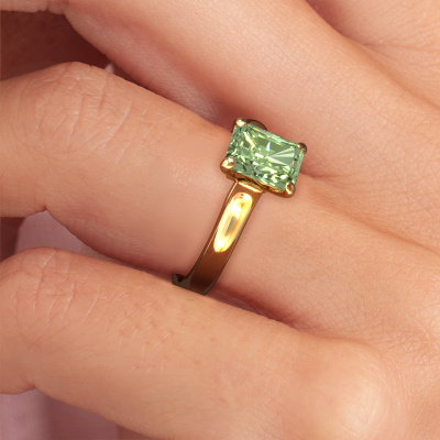 Cette bague de fiançailles porte le nom Valorie rad 1. Cette bague de fiançailles à la mode est forgée en or 14 Carat et est sertie d’un diamants synthétiques vert de 7.5x5.5 mm. Cette bague de fiançailles solitaire et forgée en or jaune unique est un pur travail d’art ! Tous les petits détails ont été fabriqués avec beaucoup de patience et de passion par notre orfèvre. Ce métier nécessite un œil expert et une main habile pour assembler cette bague de fiançailles avec la plus grande précision. Et ce travail est précisément ce qui enthousiasme nos orfèvres ! Les plus beaux diamants synthétiques vert sont sertis de manière large, de telle sorte qu'ils puissent rendre un effet encore meilleurs. Cela donne donc une allure supplémentaire à la bague de fiançailles. La bague de fiançailles est unique en raison de sa pierre précieuse naturelle, que nous avons spécialement sélectionnée pour cette bague. De plus, vous pouvez choisir vous-même la composition du métal précieux de votre bague. Vous aurez donc créé une bague de fiançailles unique pour la femmes la plus unique de votre vie ! Ce bijou est fabriquée spécialement pour vous par nos maîtres orfèvres dans notre propre atelier.En combinant les dernières techniques modernes, associées à une fabrication ancienne, nous sommes en mesure de fabriquer nos bagues de fiançailles dans notre propre studio. Chaque bijou est fabriqué sur commande. Ceci est avantageux car nous sommes en mesure de vous proposer un prix que vous ne trouverez nulle part ailleurs.Avez-vous déjà des bague de fiançailles spécifiques en tête ? Une bague de fiançailles que vous avez vu quelque part. N'hésitez pas à nous faire part de vos souhaits et nous transformerons votre design en des bague de fiançailles uniques. Vous êtes en mesure de suivre l'évolution de la conception de vos bague de fiançailles car nous utilisons des dessins en 3D. Cela vous donnera un aperçu réaliste de votre design. Nous vous enverrons volontiers une offre sans engagement basée sur un rapport qualité / prix juste. Elle va vous étonner.Pour vous faciliter la tâche, vous pouvez facilement nous retourner tout bijou commandé dans les 30 jours suivant la livraison.