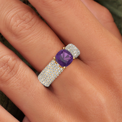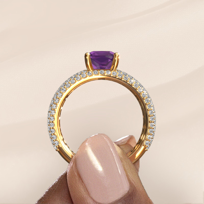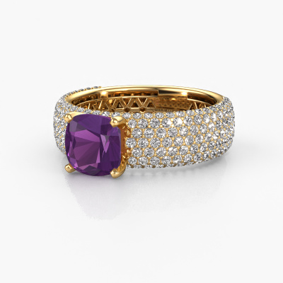 Cette bague de fiançailles porte le nom Darcy. Cette bague de fiançailles pavé est forgée en or 14 Carat et est sertie d’un améthyste de 7 mm. Cette bague de fiançailles solitaire pavé et forgée en or jaune unique est un pur travail d’art ! Tous les petits détails ont été fabriqués avec beaucoup de patience et de passion par notre orfèvre. Ce métier nécessite un œil expert et une main habile pour assembler cette bague de fiançailles avec la plus grande précision. Et ce travail est précisément ce qui enthousiasme nos orfèvres ! Les plus beaux améthystes sont sertis de manière large, de telle sorte qu'ils puissent rendre un effet encore meilleurs. Cela donne donc une allure supplémentaire à la bague de fiançailles. La bague de fiançailles est unique en raison de sa pierre précieuse naturelle, que nous avons spécialement sélectionnée pour cette bague. De plus, vous pouvez choisir vous-même la composition du métal précieux de votre bague. Vous aurez donc créé une bague de fiançailles unique pour la femmes la plus unique de votre vie ! Ce bijou est unique, car vous pouvez concevoir ces bagues en fonction de vos souhaits.Puisque nous concevons et livrons nos propres bijoux, nous sommes en mesure de vous proposer une bague de fiançailles à un prix que vous ne pourrez pas trouver ailleurs. Une alliance est fabriquée sur commande, ce qui permet d'éviter les excédents de matériel et nous permet de vous proposer une superbe offre de prix. Nous comprenons qu'acheter votre bague de fiançailles en ligne soit un risque, mais nous vous assistons volontiers dans le processus de conception, en tenant compte de votre budget.Notre équipe ajoute quotidiennement de nouveaux modèles à notre collection en ligne. Nos designers et orfèvres travaillent ensemble pour créer le meilleur design. Nous nous efforçons d'offrir une collection diversifiée de bijoux. Peut-être avez-vous déjà en tête un bijou en particulier ? Un bijou que vous avez trouvé quelque part. Veuillez nous contacter pour une consultation gratuite. Nous vous ferons une offre, basée sur un rapport qualité / prix juste, qui vous déconcertera.Pour vous faciliter la tâche, vous pouvez facilement nous retourner tout bijou commandé dans les 30 jours suivant la livraison.