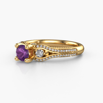 Nous avons donné le nom Nikita à cette bague de fiançailles. Cette bague forgée en or 14 Carat est sertie d’un améthyste de 5 mm. Cette bague est une large bague vintage forgée en or jaune unique qui fera certainement briller l’amour de votre vie ! Et c'est exactement ce que nous avons comme objectif. Un beau améthyste est serti dans cette bague de fiançailles vintage. Vous pouvez, bien entendu, utiliser chaque pierre précieuses que nous proposons sur notre site La pierre précieuse sera sélectionnée avec soin, car nous pensons que seule la plus belle des pierres précieuses peut briller sur votre bague de fiançailles de bon goût, qu’en dites-vous ? Notre orfèvre fabrique votre bague de fiançailles dans notre propre atelier et place le améthyste dans l'anneau de la bague avec une précision extrême. Donc, elle est travaillée et polie jusqu'à ce que le résultat désiré soit visible : la bague de fiançailles parfaite pour l'amour de votre vie ! Ce bijou est fabriquée spécialement pour vous par nos maîtres orfèvres dans notre propre atelier.Nos orfèvres ne fabriqueront votre bague de fiançailles qu'une fois que vous l'aurez commandée. Nous ne faisons pas de stock. L'avantage de cela est que nous n'avons pas à inclure les frais de stockage dans nos prix, et nous pouvons donc vous offrir des bijoux à un prix très bas.Avez-vous déjà des bague de fiançailles spécifiques en tête ? Une bague de fiançailles que vous avez vu quelque part. N'hésitez pas à nous faire part de vos souhaits et nous transformerons votre design en des bague de fiançailles uniques. Vous êtes en mesure de suivre l'évolution de la conception de vos bague de fiançailles car nous utilisons des dessins en 3D. Cela vous donnera un aperçu réaliste de votre design. Nous vous enverrons volontiers une offre sans engagement basée sur un rapport qualité / prix juste. Elle va vous étonner.Pour vous faciliter la tâche, vous pouvez facilement nous retourner tout bijou commandé dans les 30 jours suivant la livraison.
